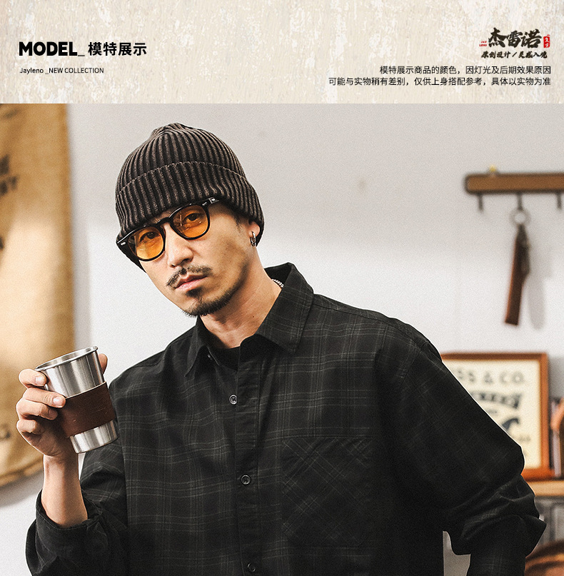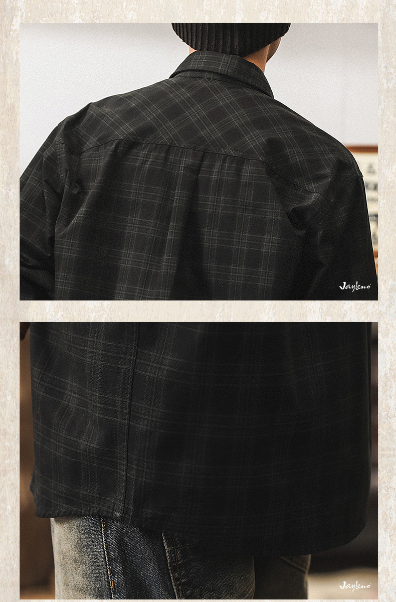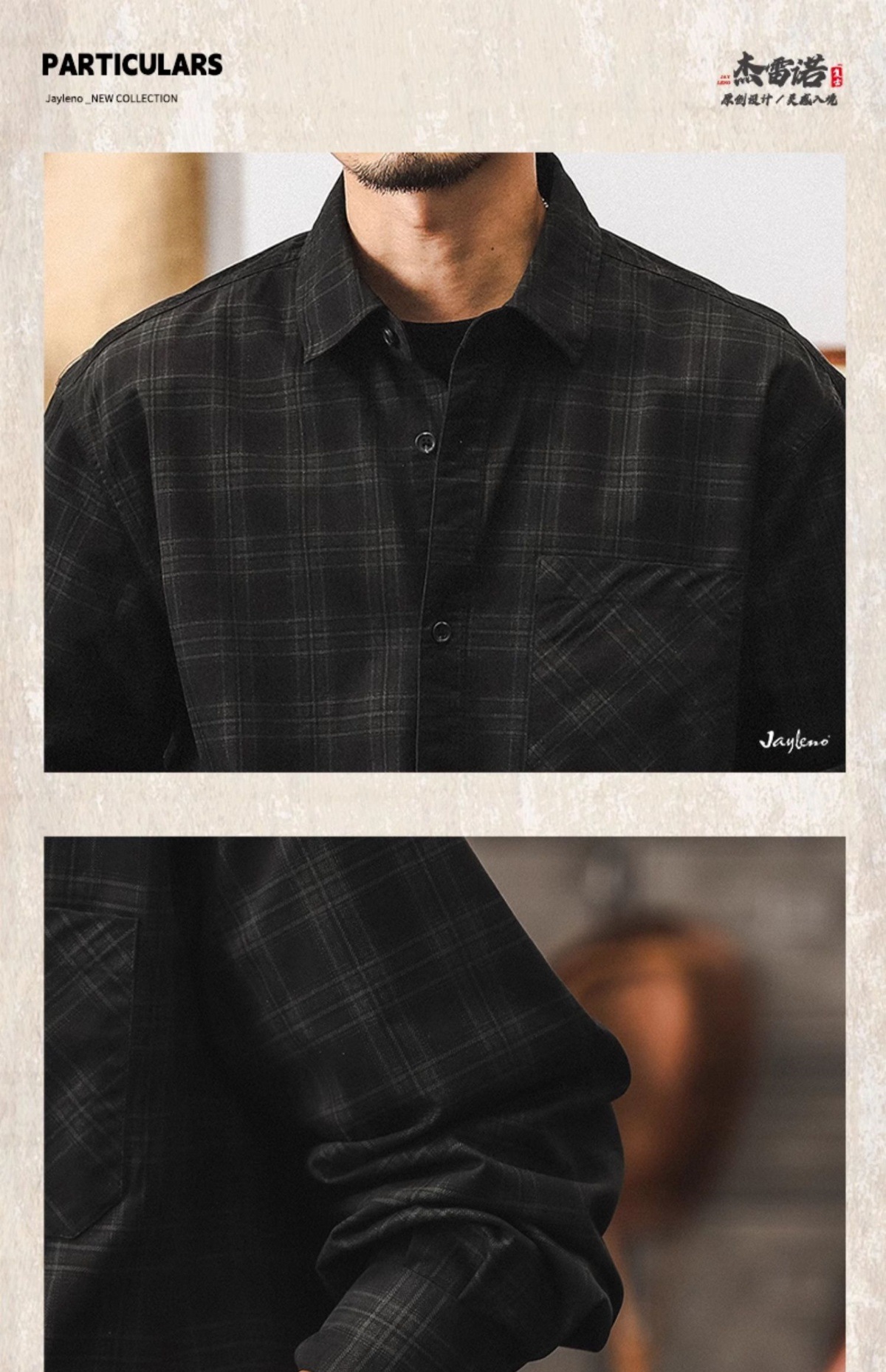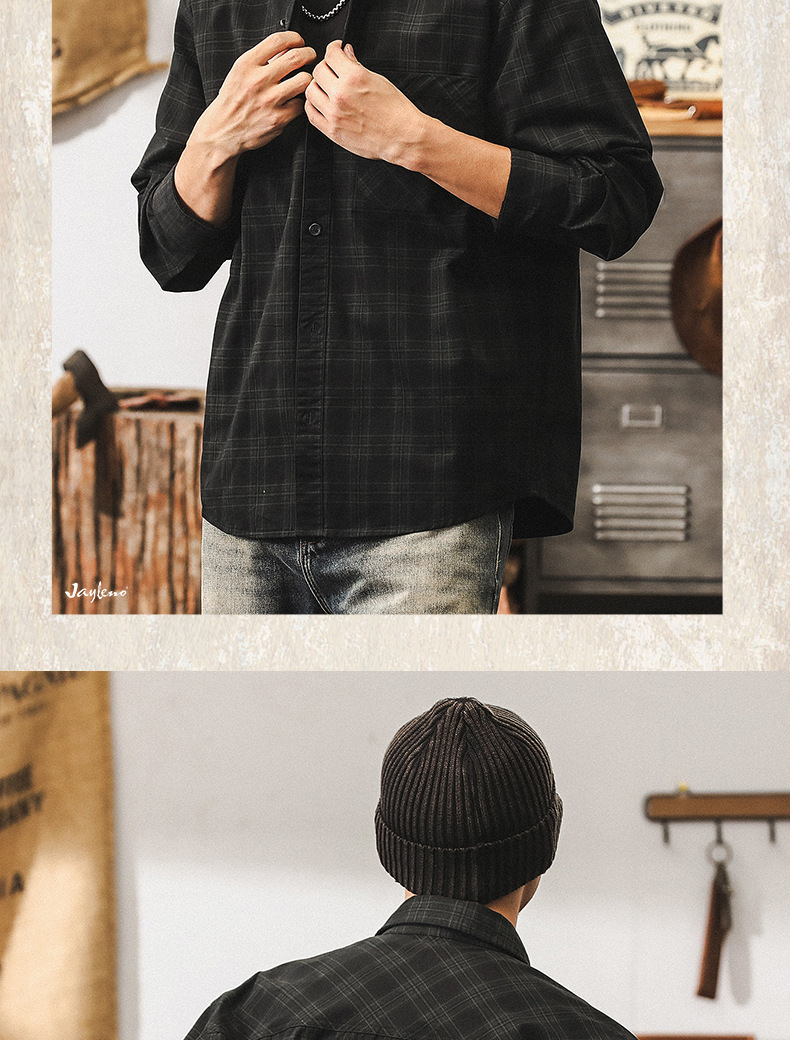 아메리칸 레트로 체크 무늬 셔츠 남성 긴팔 가을 트렌디 브랜드 하이 엔드 핸섬 셔츠 남성 루즈 탑 재킷