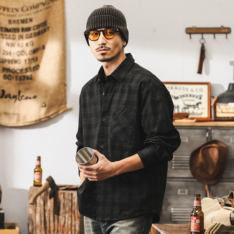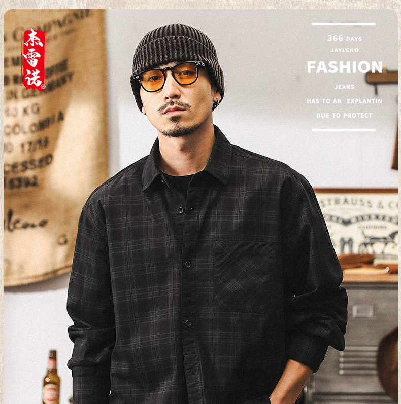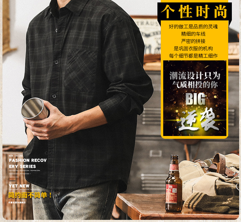 아메리칸 레트로 체크 무늬 셔츠 남성 긴팔 가을 트렌디 브랜드 하이 엔드 핸섬 셔츠 남성 루즈 탑 재킷스토어 가기