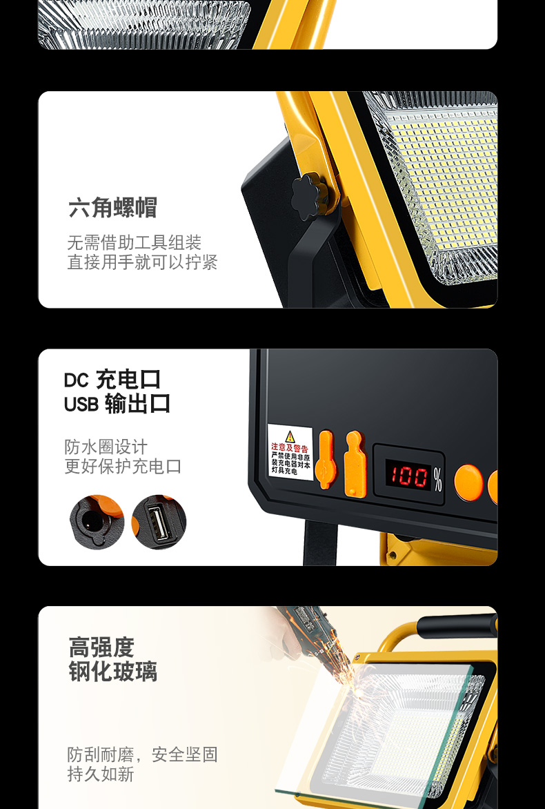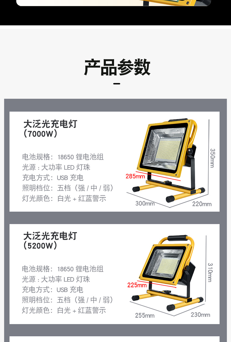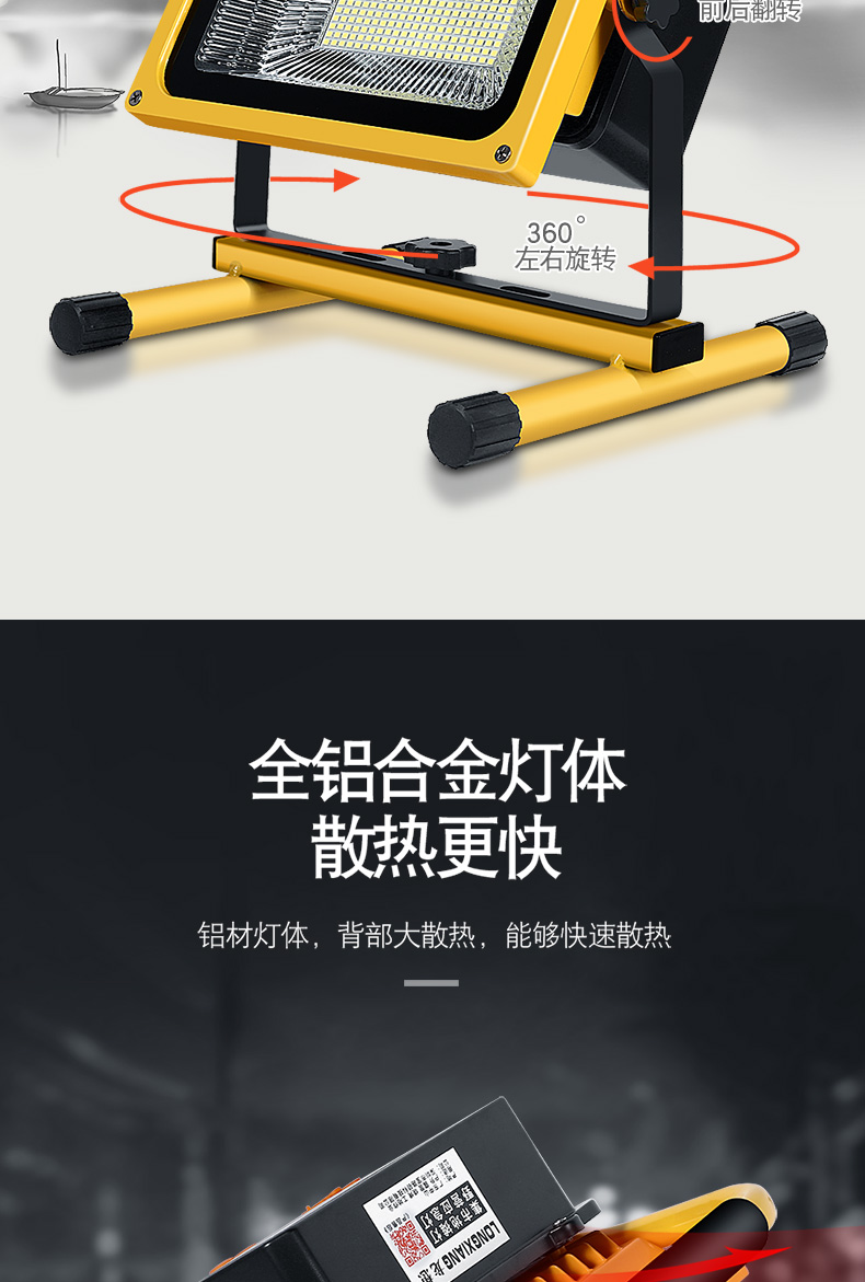 충전식 투광 조명 LED 가정용 비상 조명 정전 건설 현장 야외 농구 스톨 휴대용 슈퍼 밝은 캠핑 조명