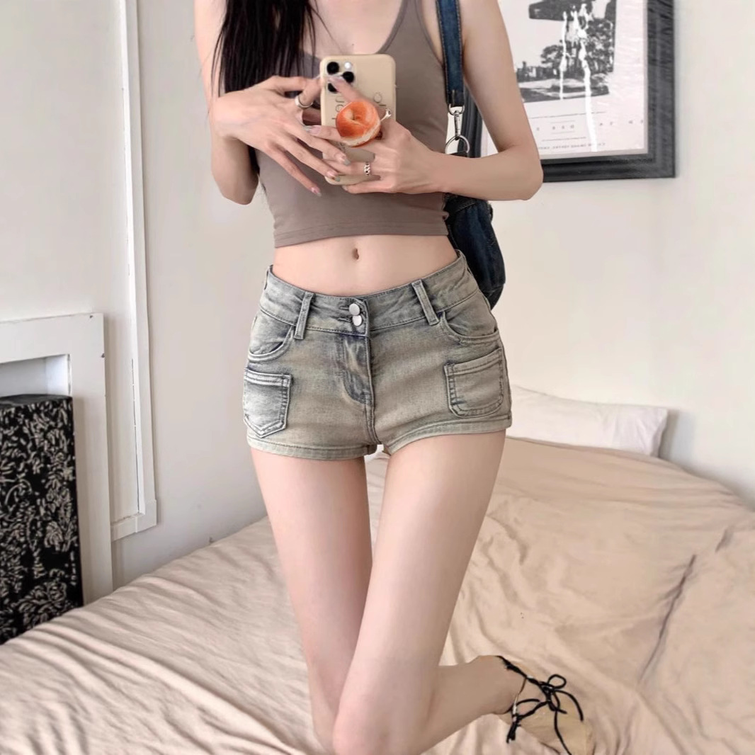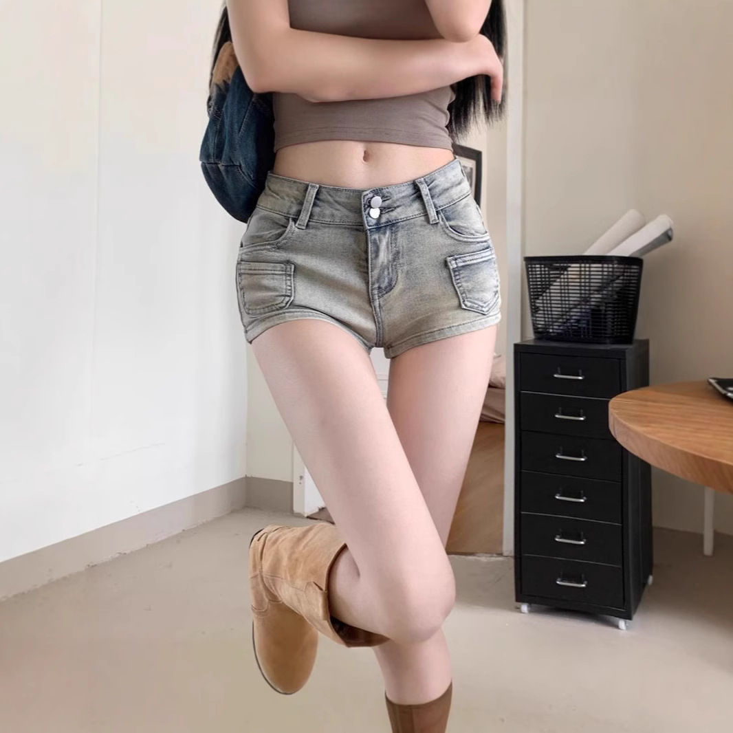 아메리칸 핫걸 로우 웨이스트 데님 슈퍼 쇼츠 여성 여름 슬리밍 힙 핫팬츠 레트로 라이트 컬러 스트레이트 팬츠