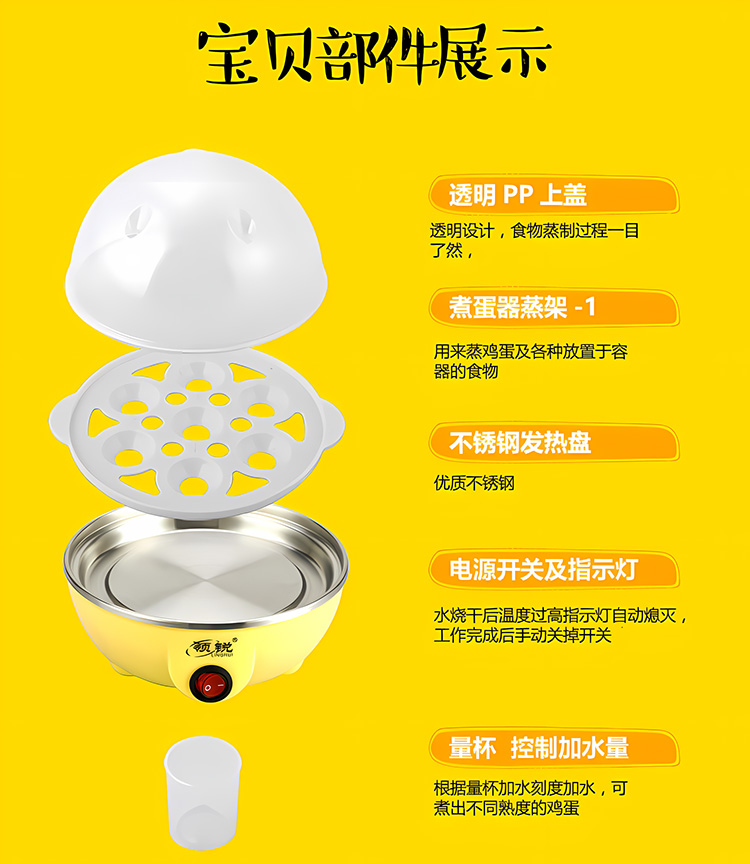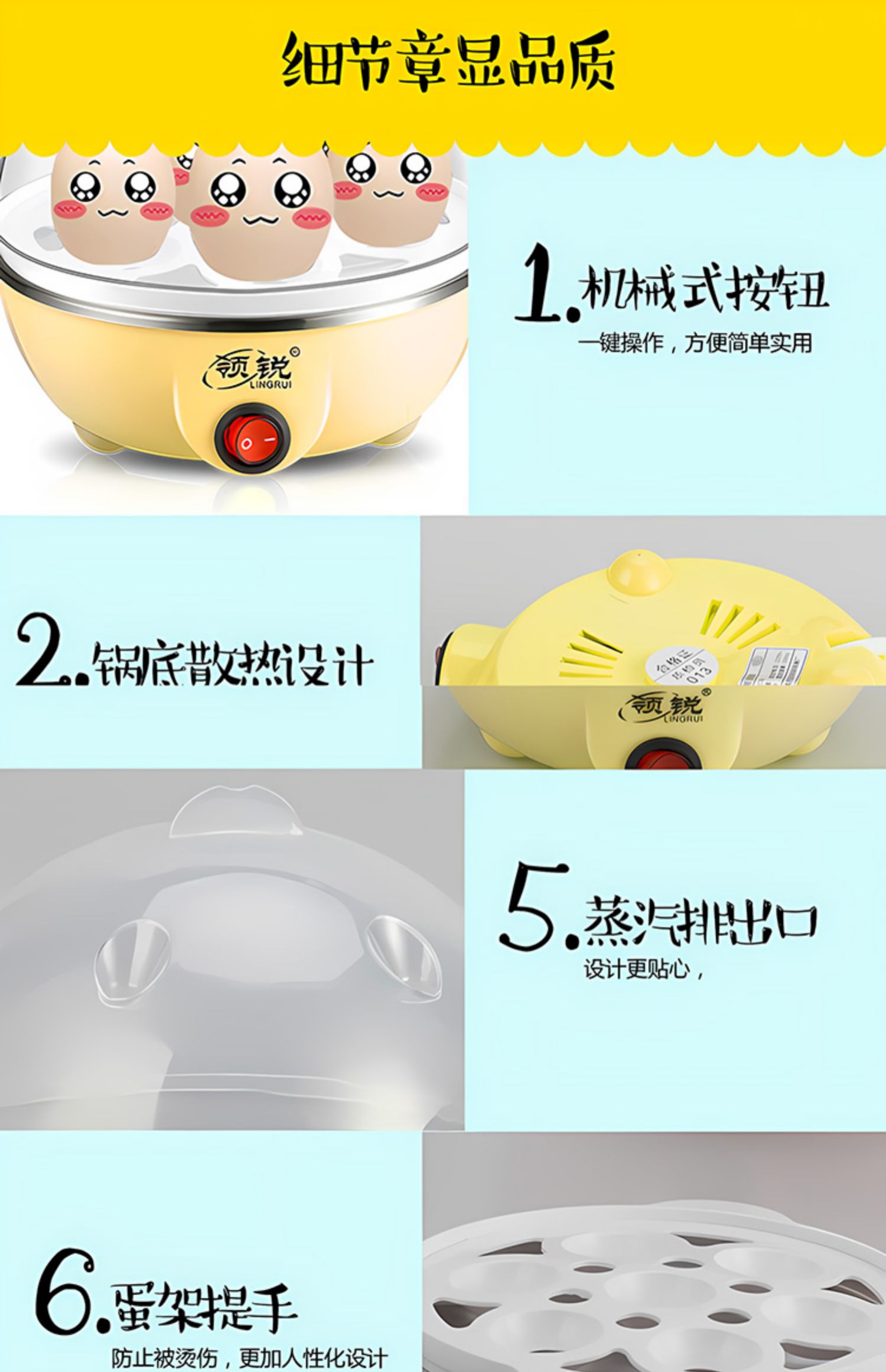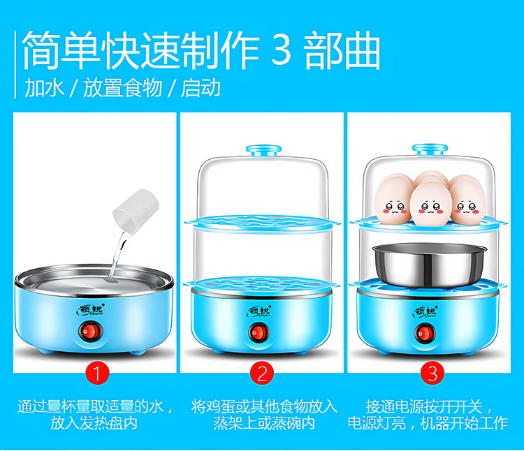 계란찜기, 자동 전원 차단, 찜기, 계란찜기, 미니 뜨거운 우유 아침 식사 기계, 뜨거운 빵, 가정용 소형 전기 찜기스토어 가기