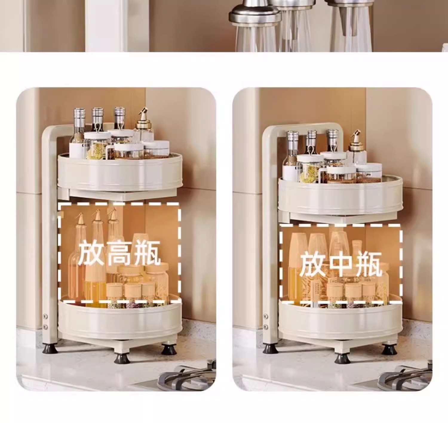 회전 조미료 보관 랙 주방 조미료 랙 더블 레이어 가정용 조리대 코너 조미료 보관 랙스토어 가기