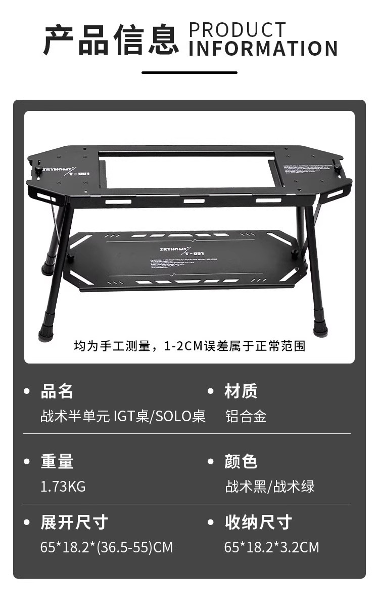 야외 캠핑 반 유닛 접이식 테이블 IGT 접합 리프팅 전술 테이블 알루미늄 합금 피크닉 테이블 바베큐 테이블