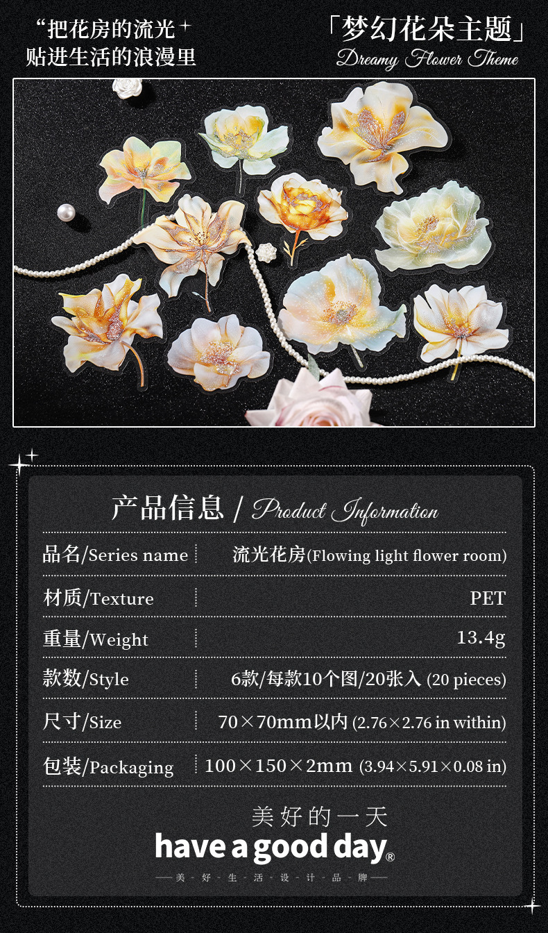 좋은 하루 PET 스티커 팩 스트리머 플라워 룸 시리즈 크리 에이 티브 소재 핸드북 diy 장식 Guka 콜라주