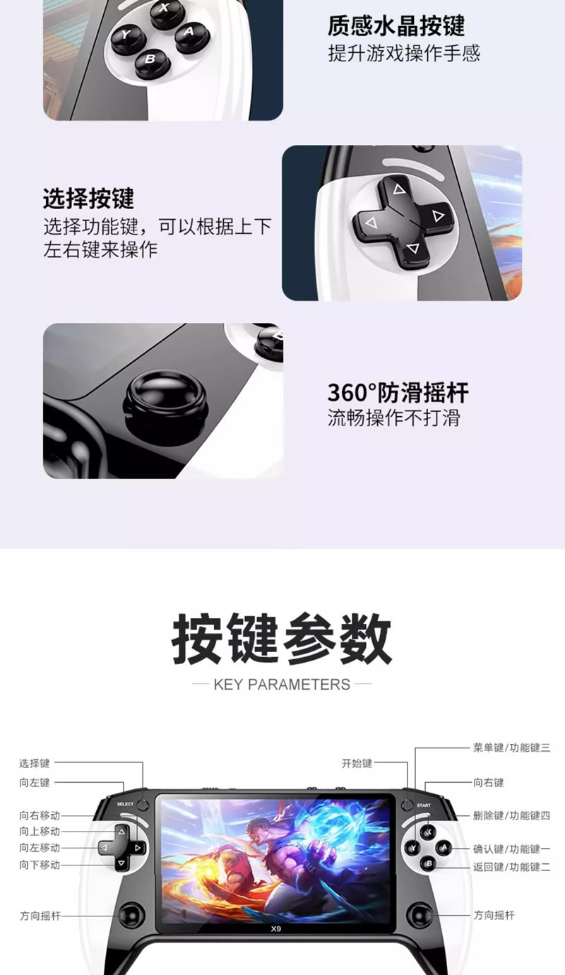 새로운 X9 휴대용 레트로 향수 휴대용 듀얼 조이스틱 PSP 게임 콘솔 5.1inch HD 대형 스크린 휴대용 게임 콘솔