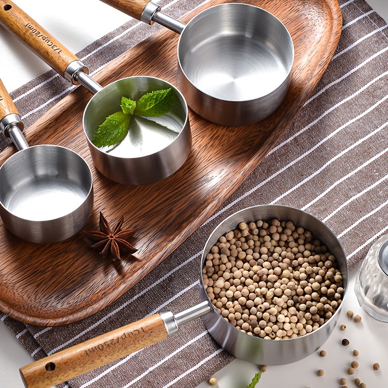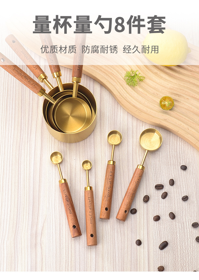 스테인리스 계량스푼 및 계량컵 8종 세트, 나무 손잡이 베이킹 세트, 주방 조미료 계량 도구, 해외 직배송, 재고 있음