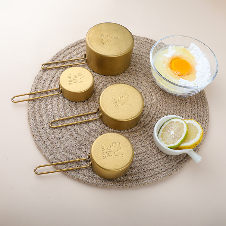 • 스테인리스 와이어 손잡이가 있는 금 계량컵(4개 세트)