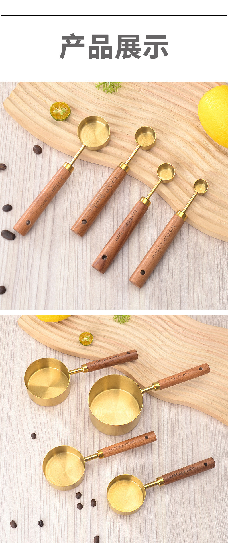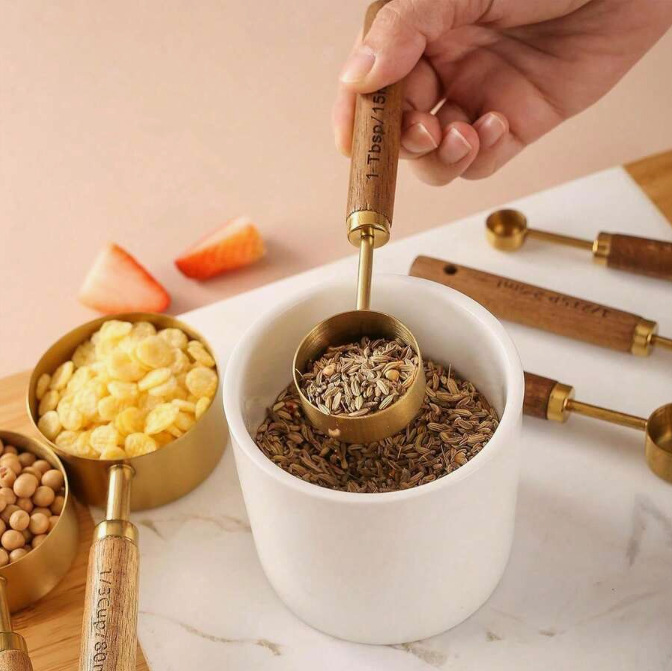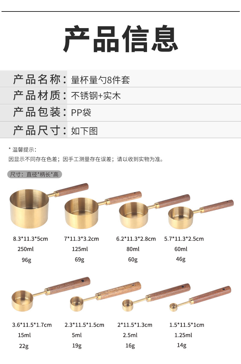 • 아카시아 골드 계량컵 + 계량스푼 세트 (8개 세트)