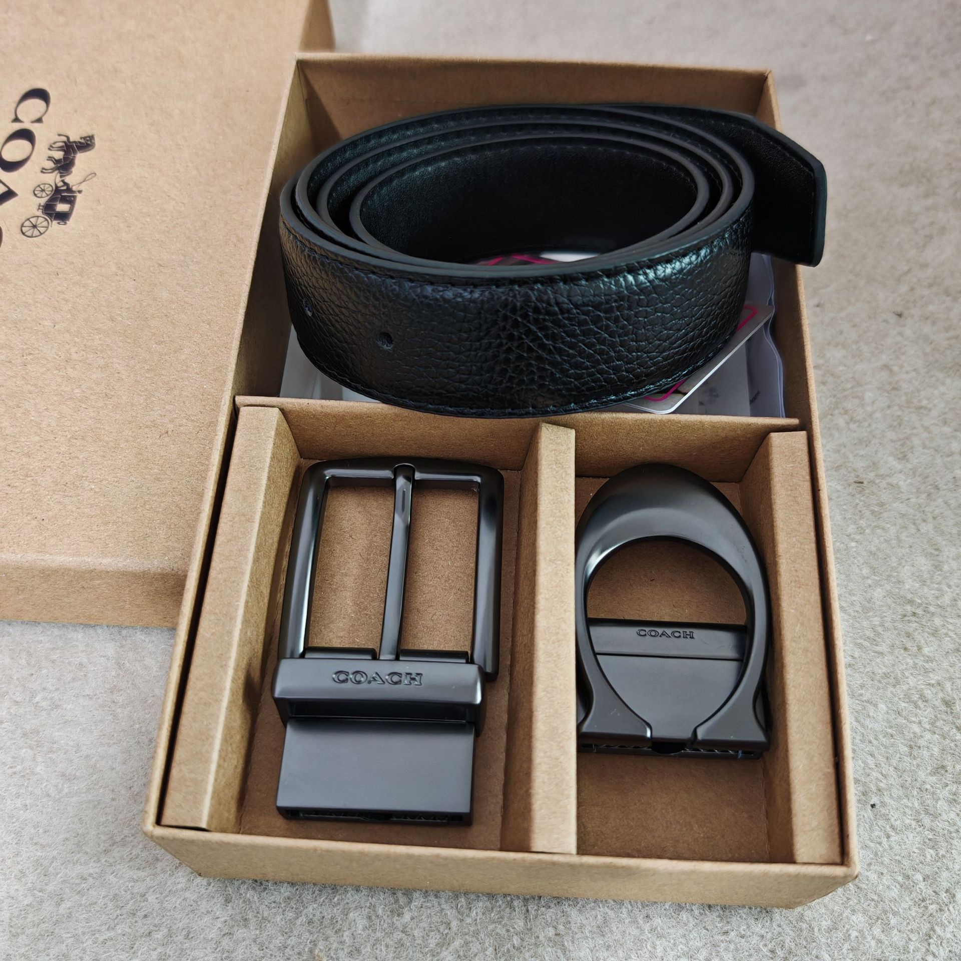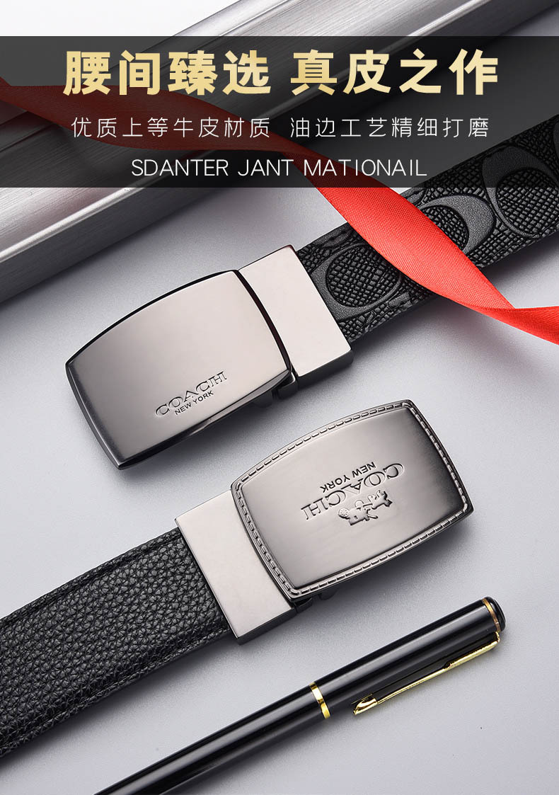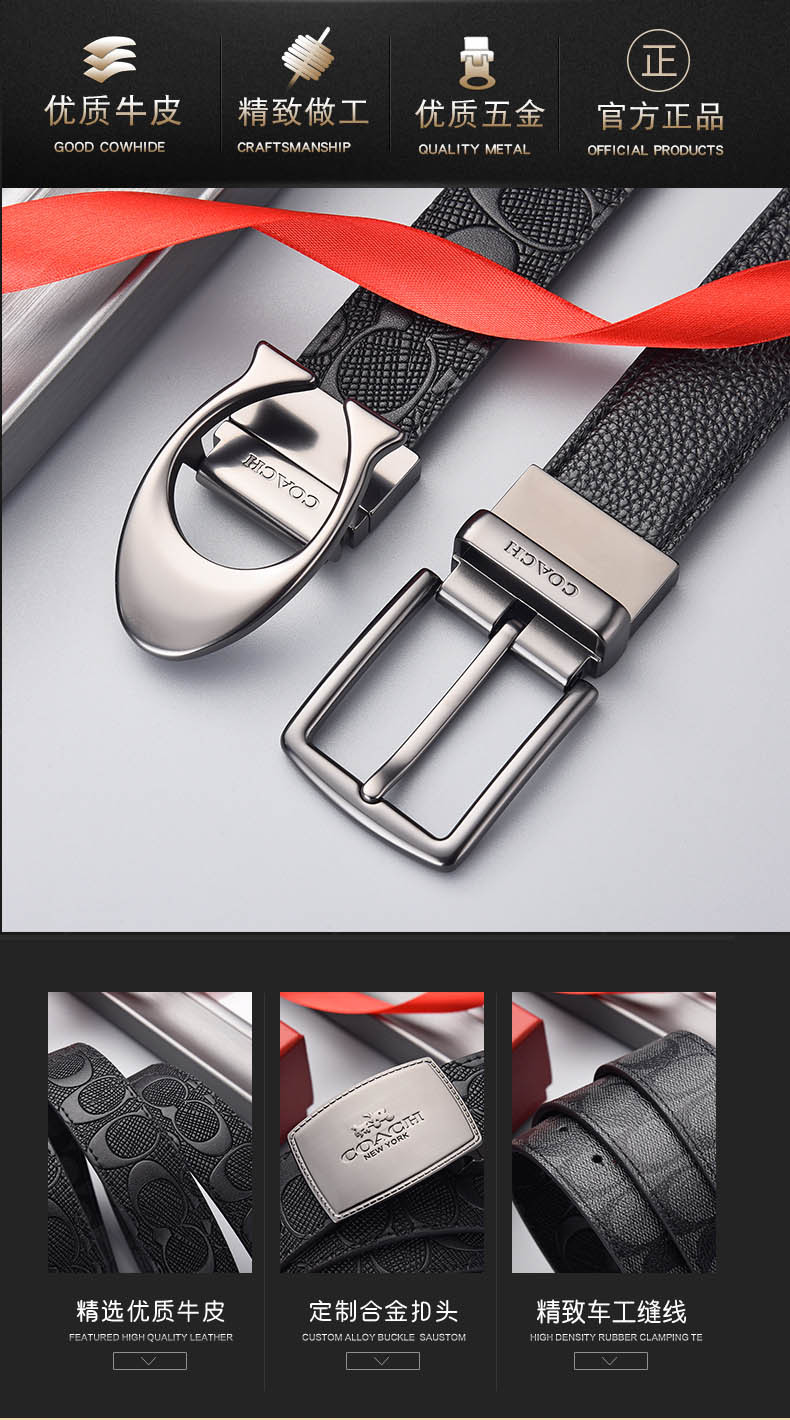 새로운 남성용 벨트 Koujia 핀 버클 자동 버클 양면 양각 소 가죽 벨트 선물 상자 세트 더블 버클 드롭 배송