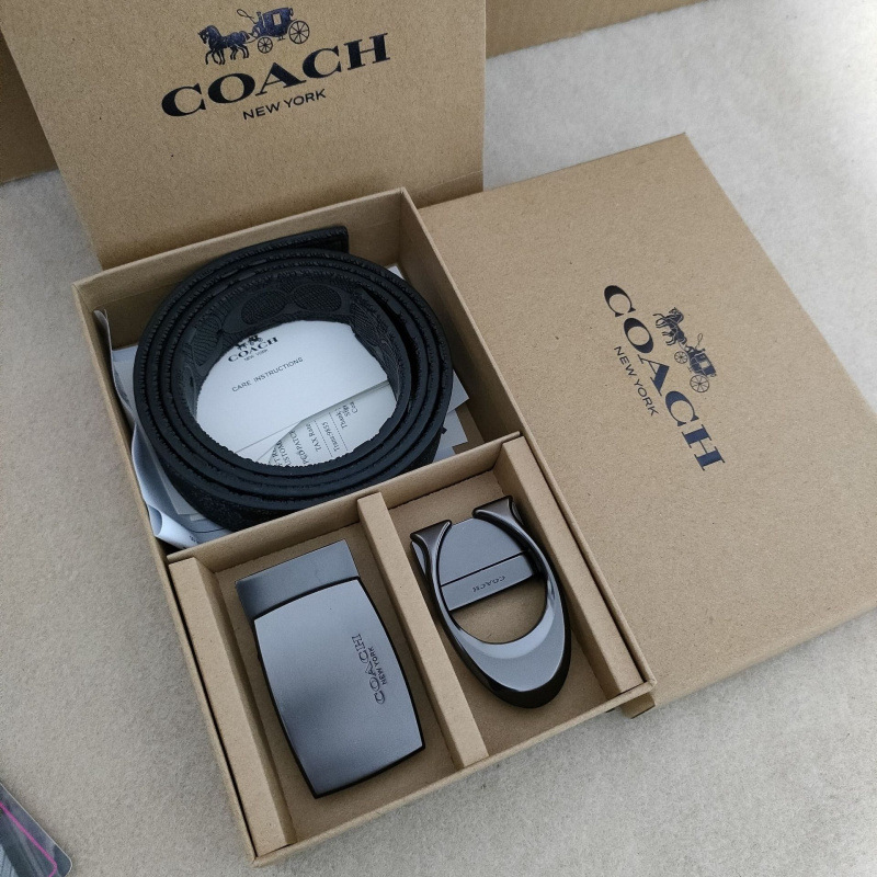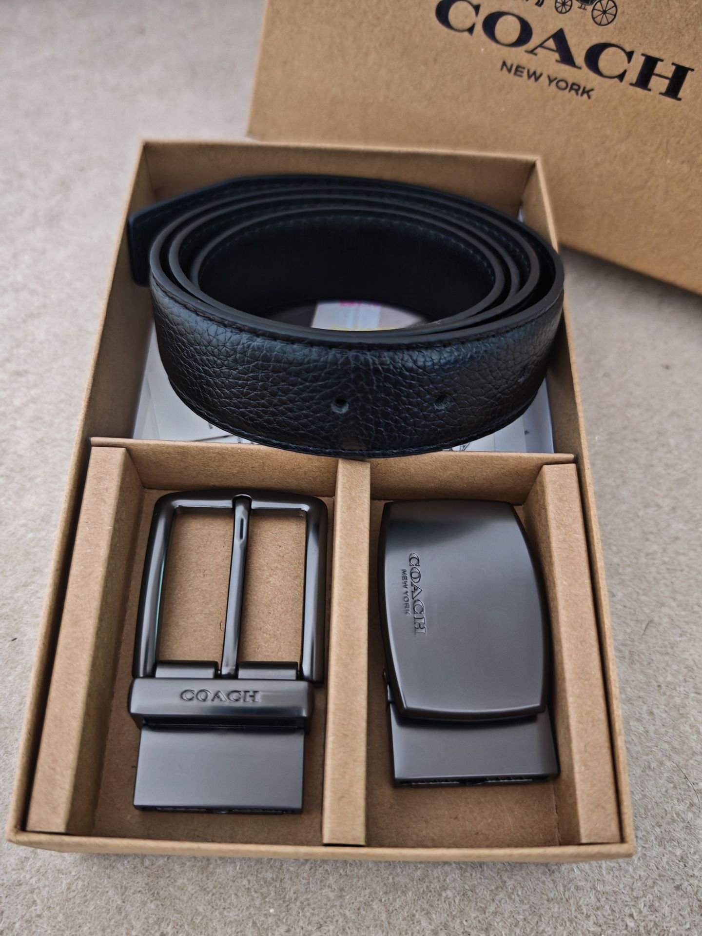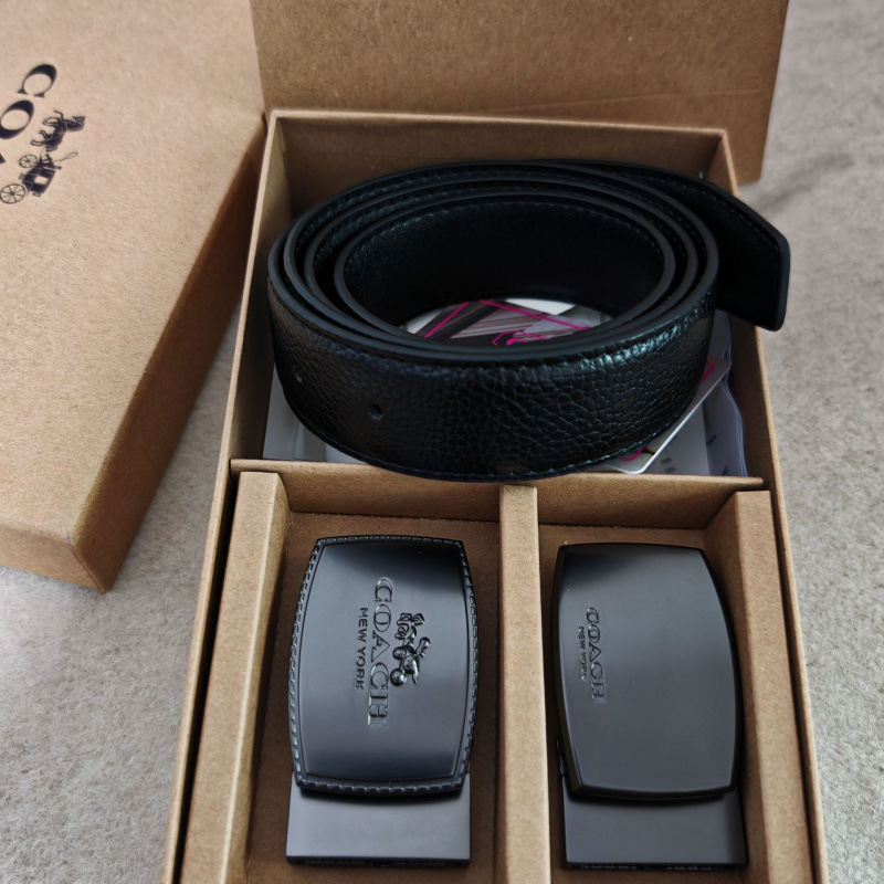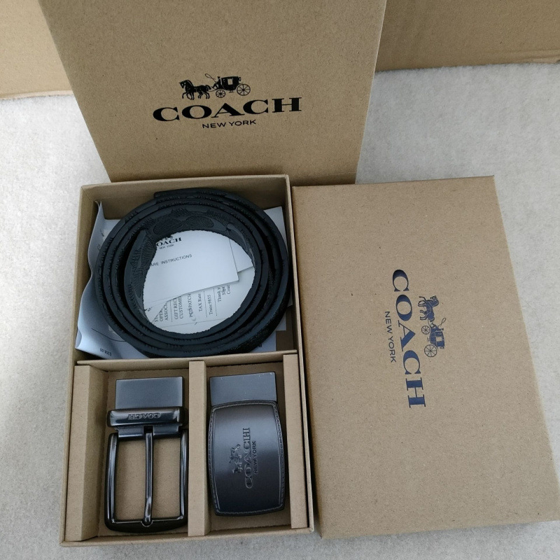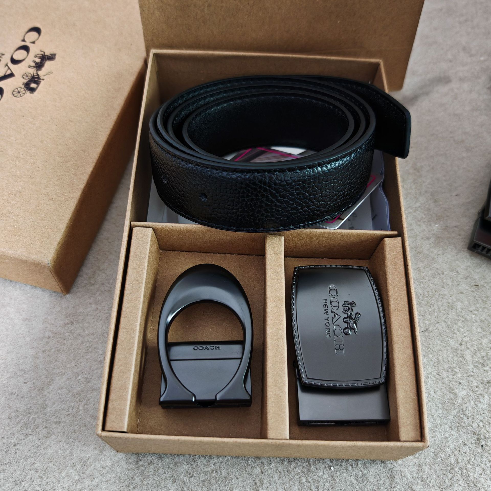 새로운 남성용 벨트 Koujia 핀 버클 자동 버클 양면 양각 소 가죽 벨트 선물 상자 세트 더블 버클 드롭 배송