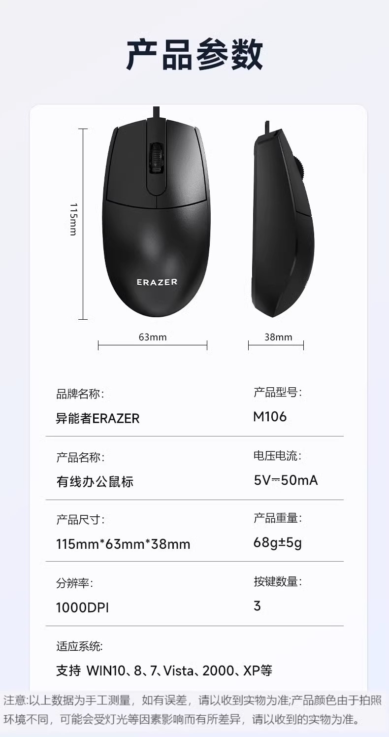 이능자 M106 유선 광 마우스 비즈니스 오피스 홈 휴대용 노트북 데스크탑 컴퓨터 USB 범용