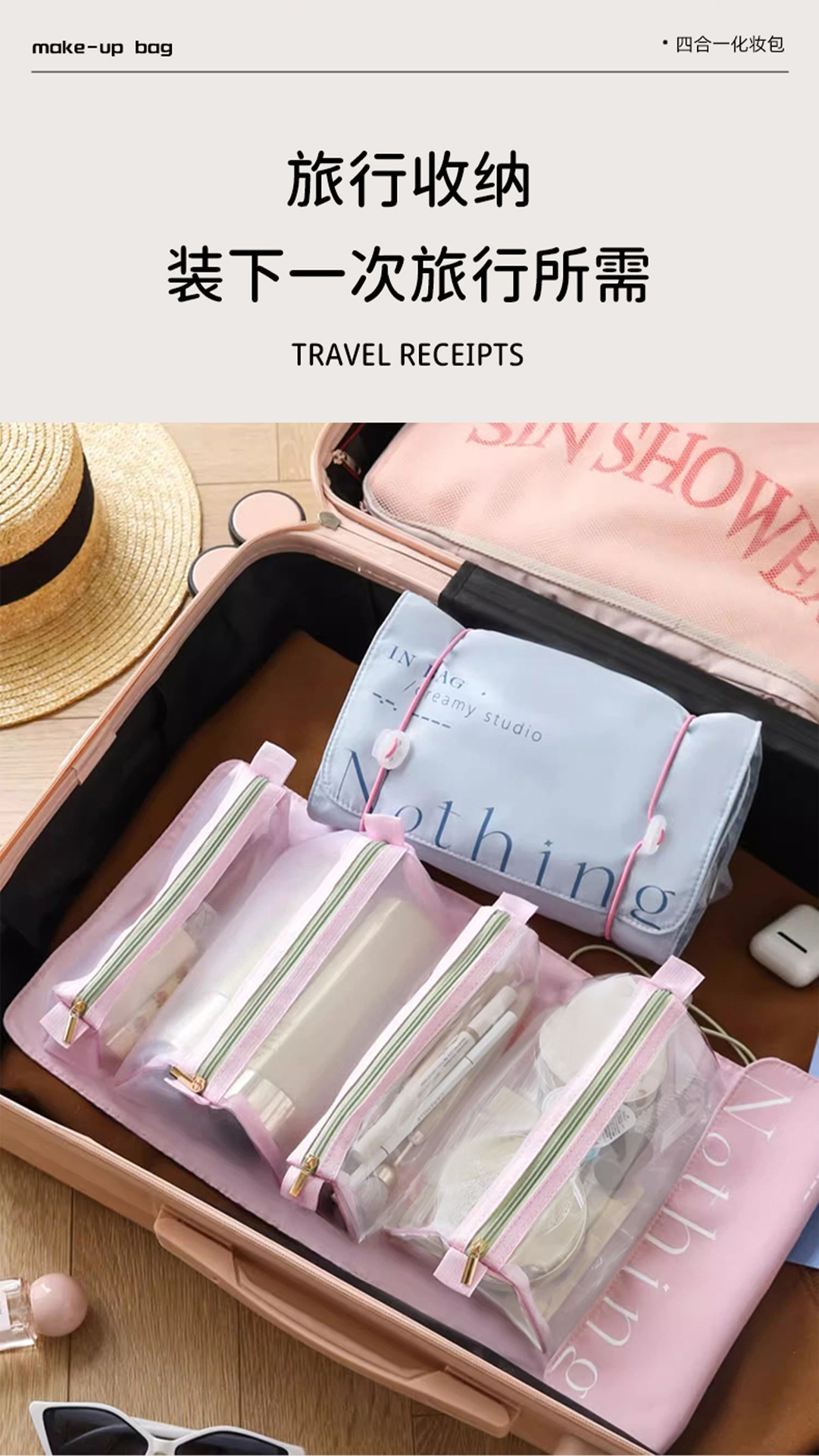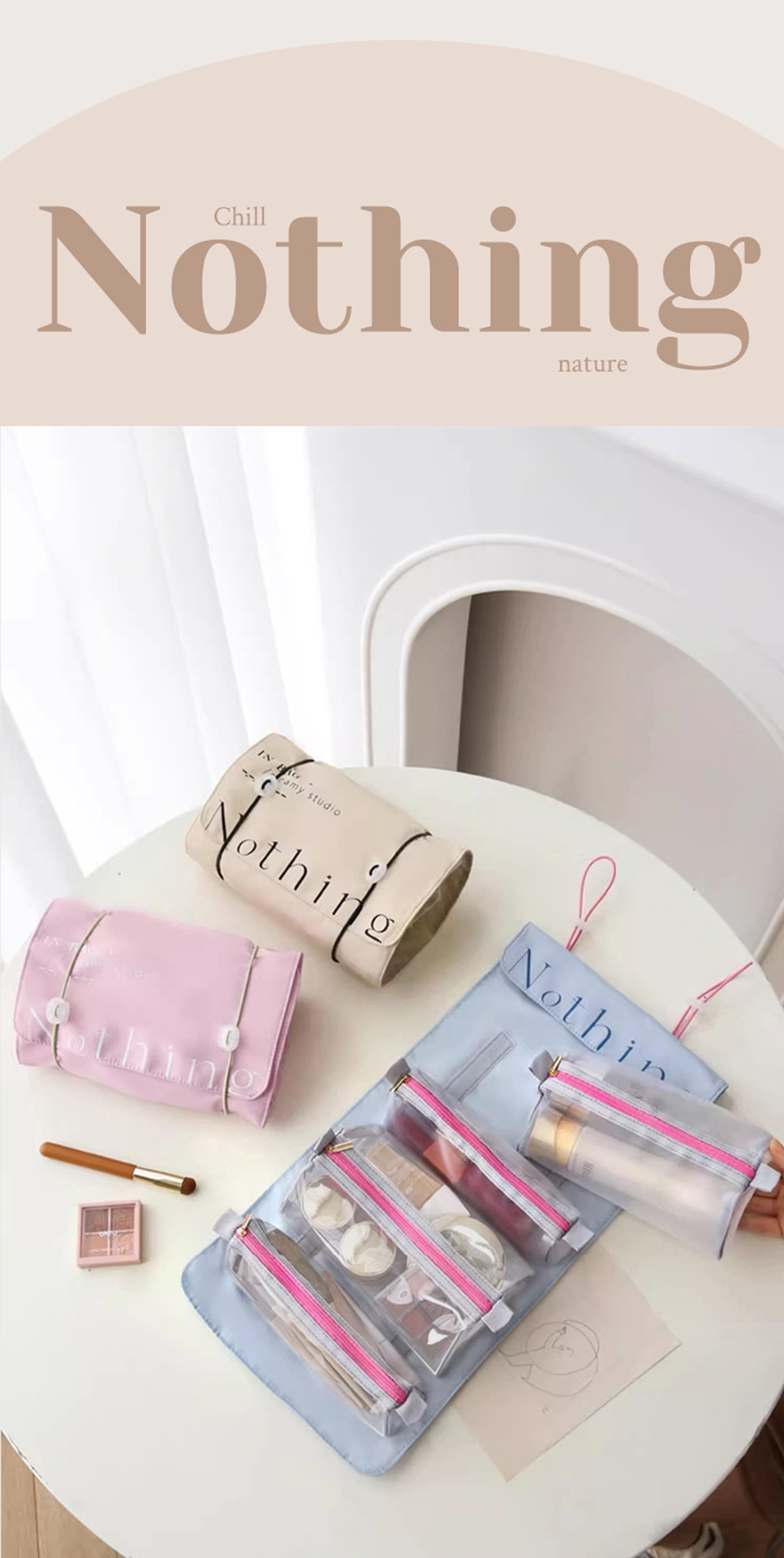 여성용 접이식 여행용 화장품 가방, 휴대용 대용량 세면도구 보관 가방, 여행 및 출장 유물, 스킨 케어 세면도구 가방스토어 가기