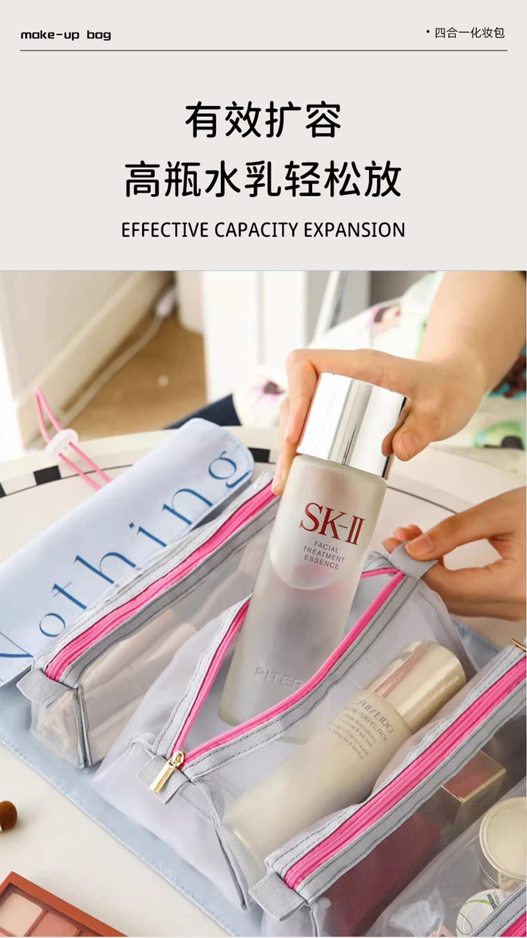 여성용 접이식 여행용 화장품 가방, 휴대용 대용량 세면도구 보관 가방, 여행 및 출장 유물, 스킨 케어 세면도구 가방
