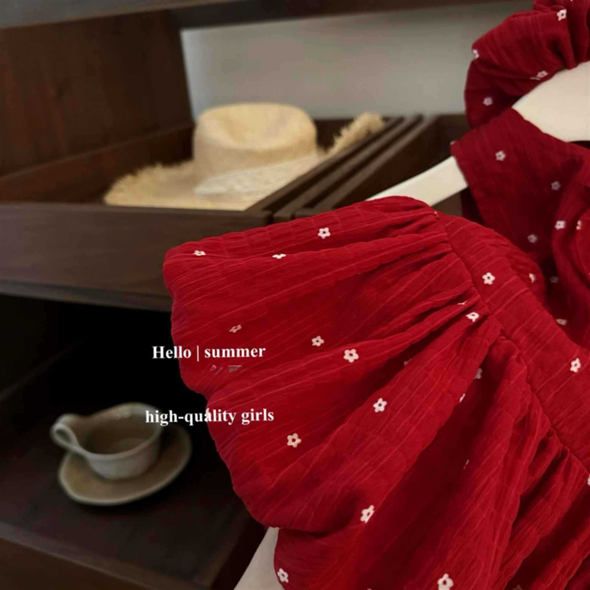 【스위트 샤오시】정말 귀엽다! 여자 아기의 달콤한 빨간색 귀여운 꽃무늬 돌잔치 꽃봉오리 공주 드레스, 트렌디하다