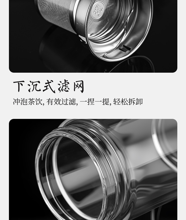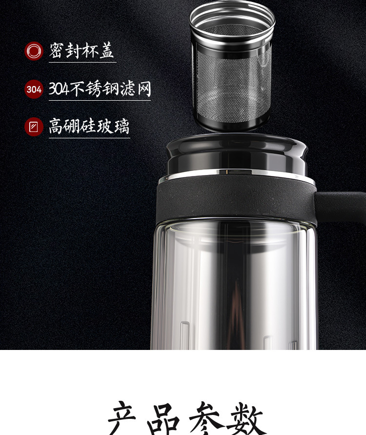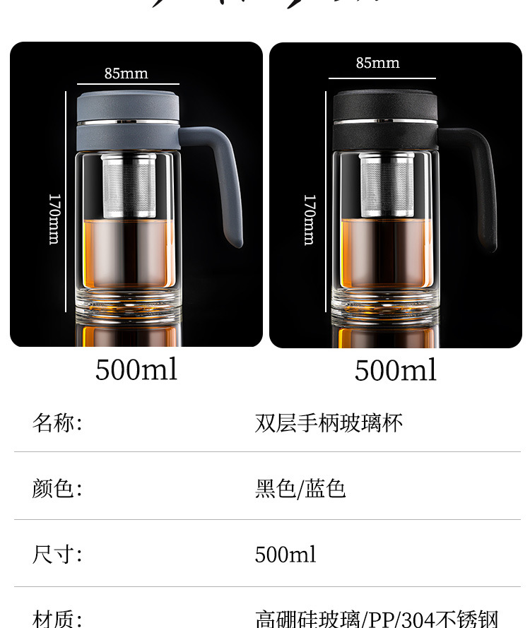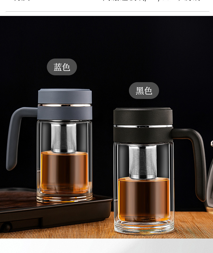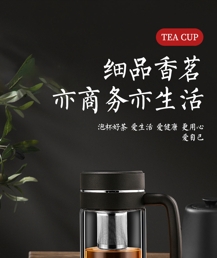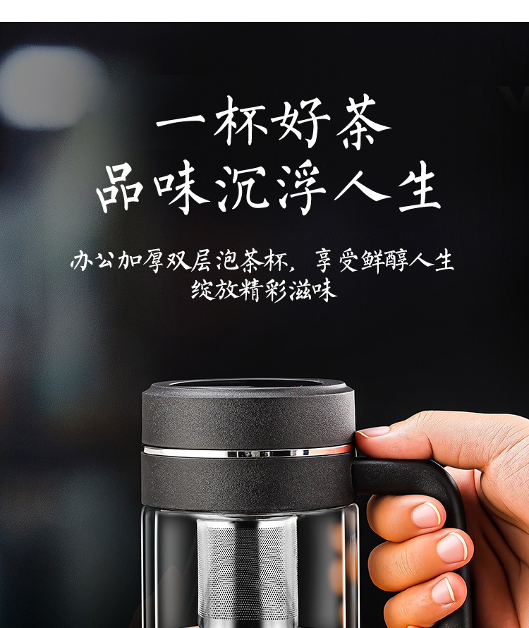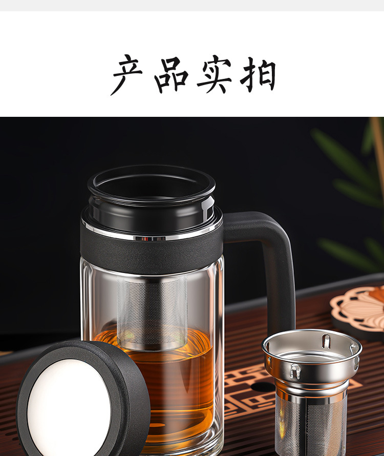 손잡이가 있는 유리 컵, 차 컵, 가정용 고급 사무실 물컵, 남성용 필터가 있는 차 컵, 고붕규산염 차 컵스토어 가기