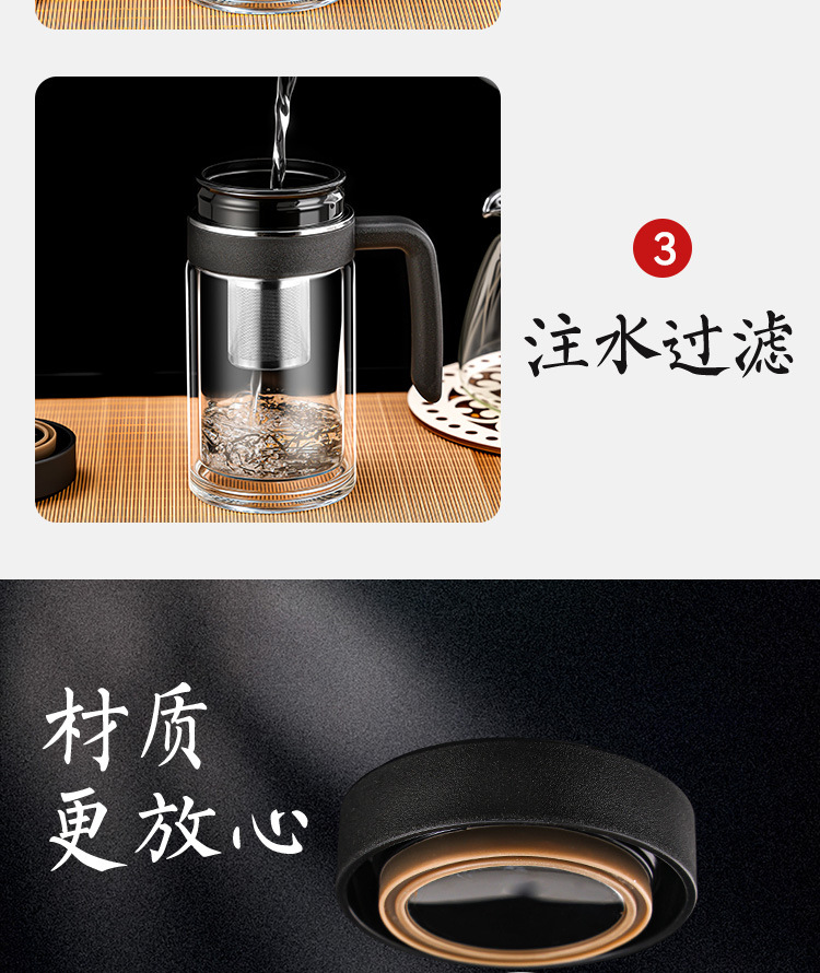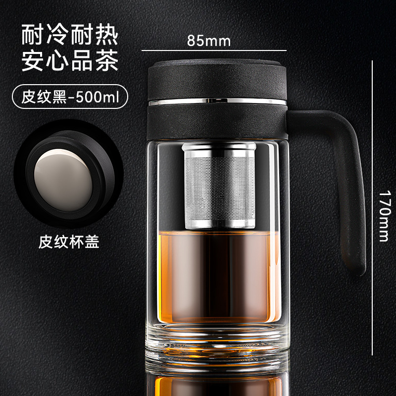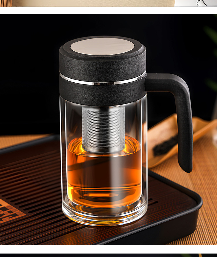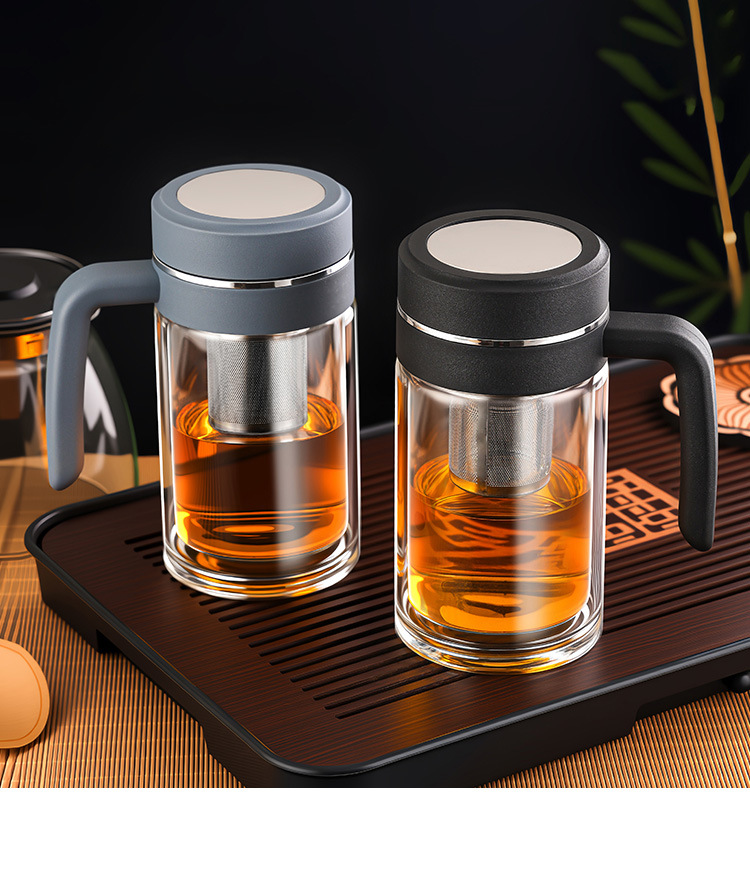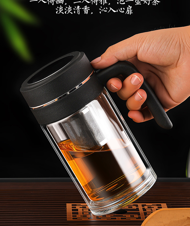 손잡이가 있는 유리 컵, 차 컵, 가정용 고급 사무실 물컵, 남성용 필터가 있는 차 컵, 고붕규산염 차 컵