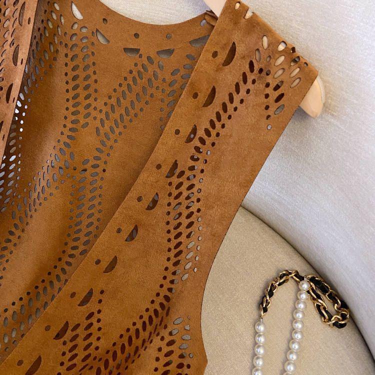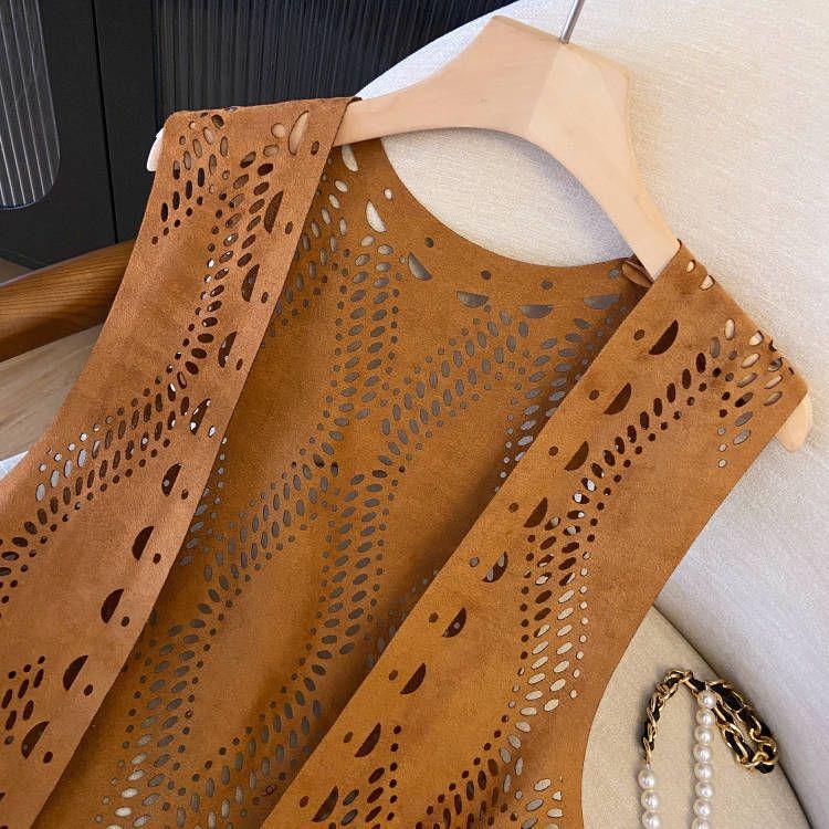 웨스턴 카우보이 방랑 스타일 복고풍 스웨이드 태슬 중공 얇은 양복 조끼 여성을위한 신장 여행 외부 조끼