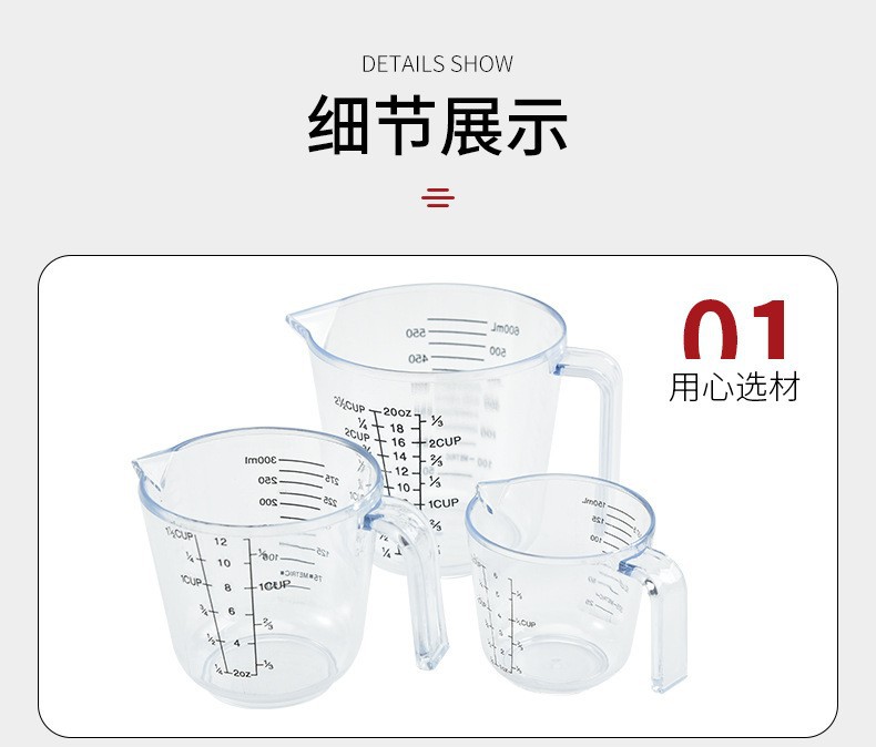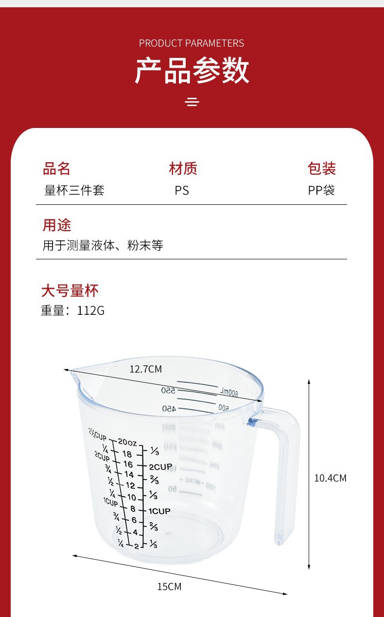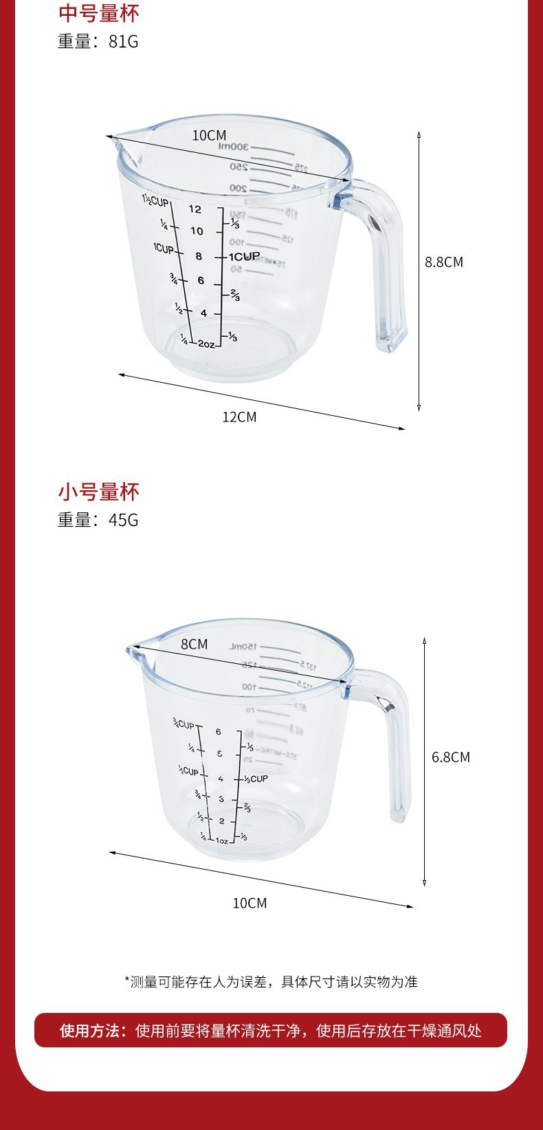 PS 투명 플라스틱 측정 컵 세트 스케일 컵 두꺼운 주방 측정 컵 측정 컵 베이킹 측정 컵