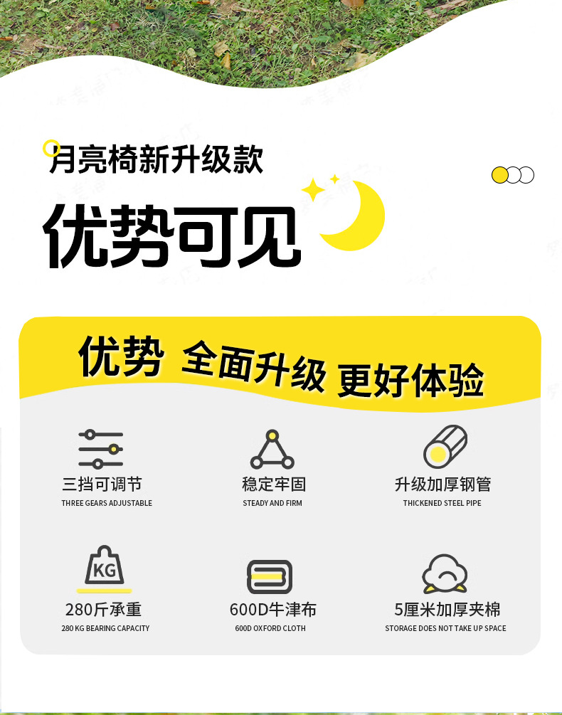 높이 조절이 가능한 야외 접이식 문체어, 3단 조절 다리 받침대, 라운지 의자, 야외 캠핑, 피크닉, 낚시, 해변 점심 시간 의자