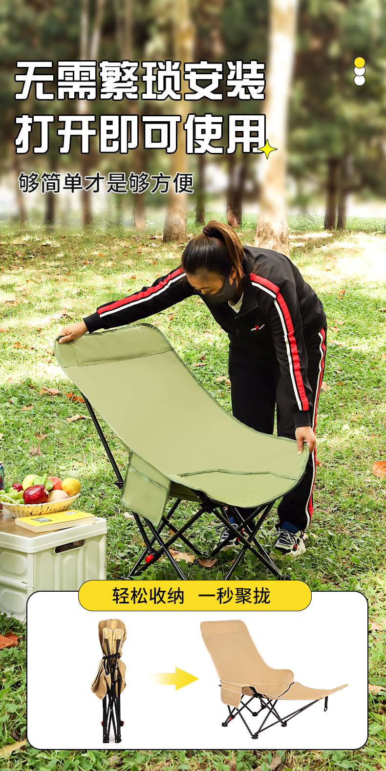 높이 조절이 가능한 야외 접이식 문체어, 3단 조절 다리 받침대, 라운지 의자, 야외 캠핑, 피크닉, 낚시, 해변 점심 시간 의자스토어 가기