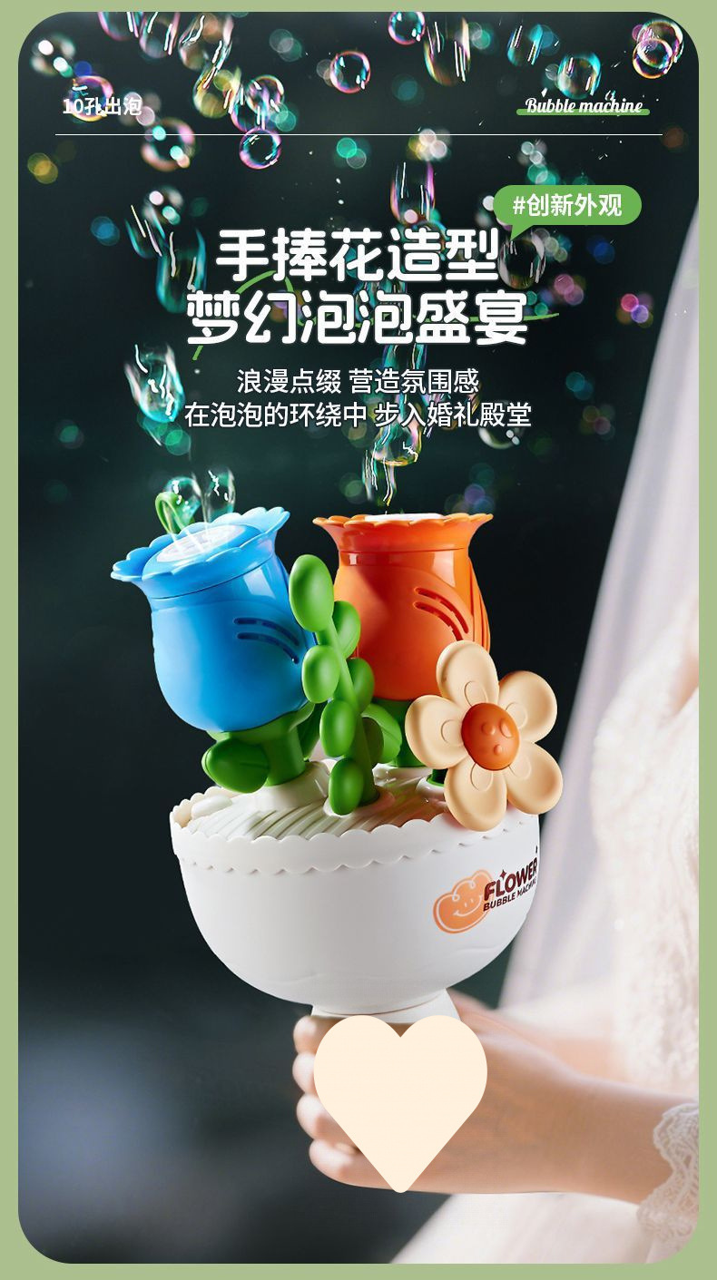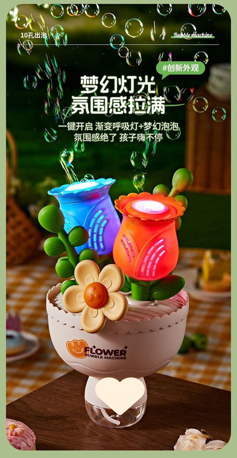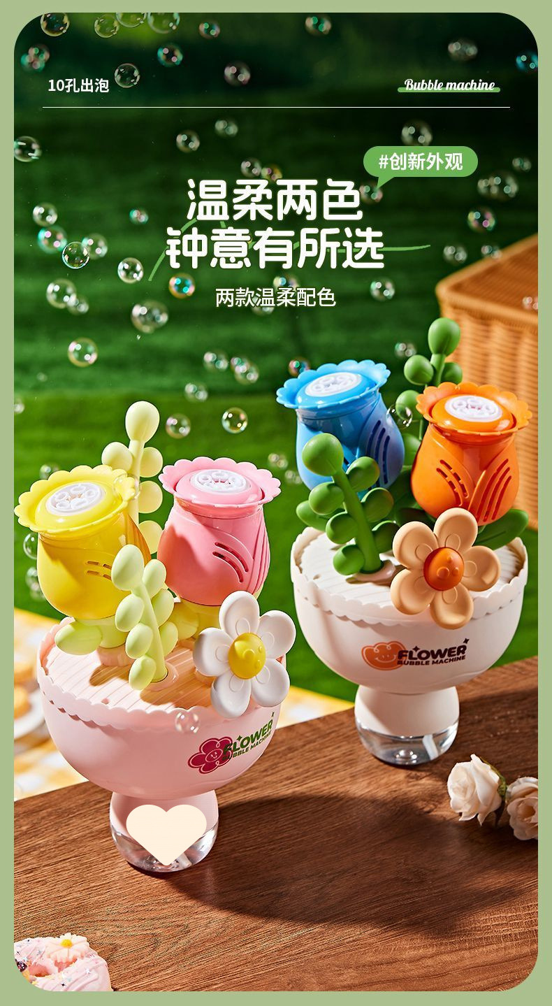 꽃다발 버블 머신, 전기 조명, 남아 및 여아용 어린이 장난감, A5 완전 자동 버블 밴드스토어 가기