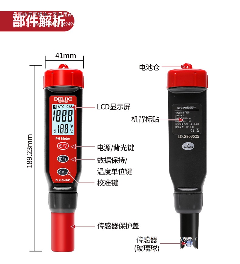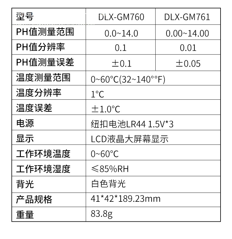 • 가정용 모델 해상도: 0.1ph [자동 감지 PH/온도]