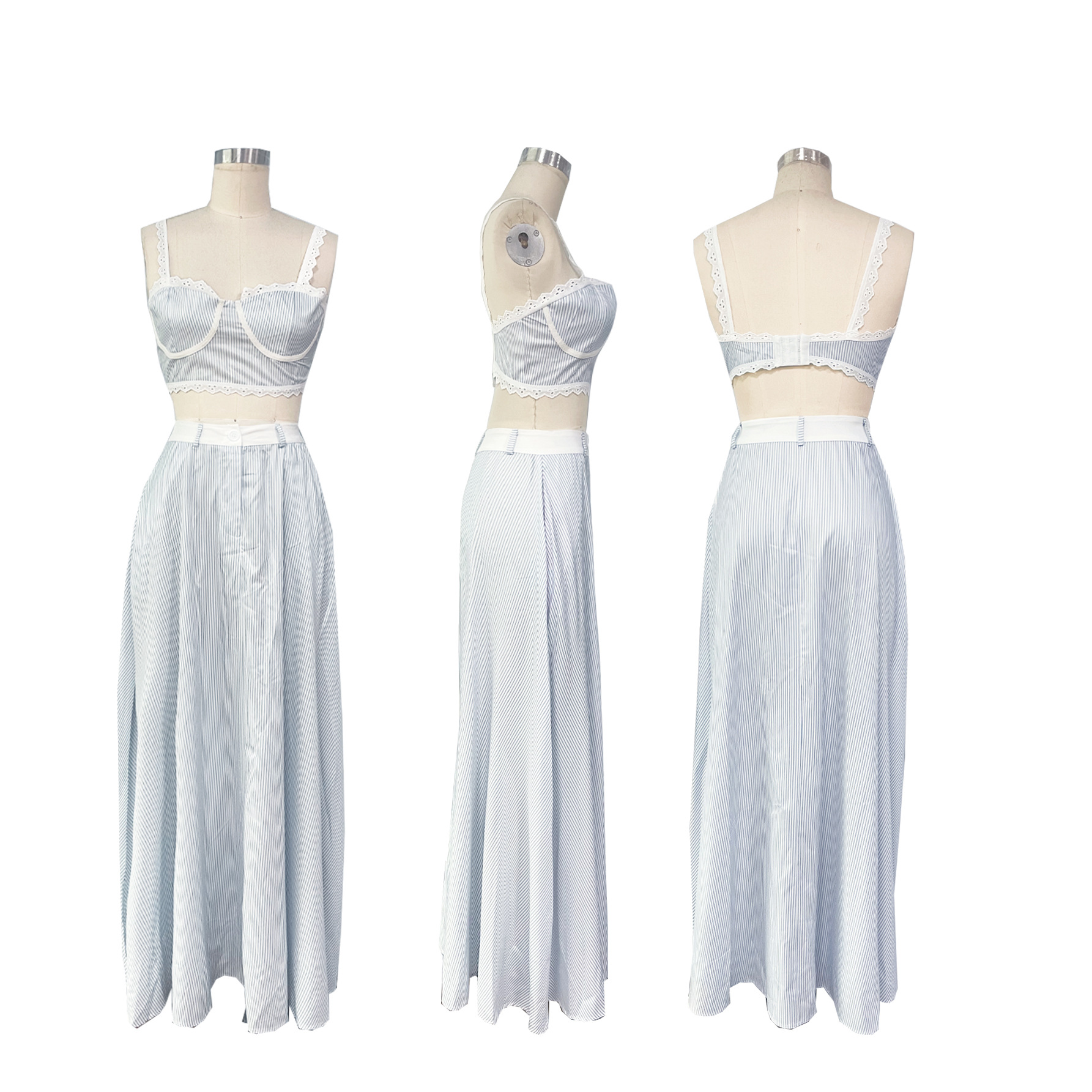 TW719 유럽과 미국의 국경 간 여성 여름 패션 레이스 스플 라이스 캐미솔 핫 소녀 하이 웨이스트 스커트 투피스 세트