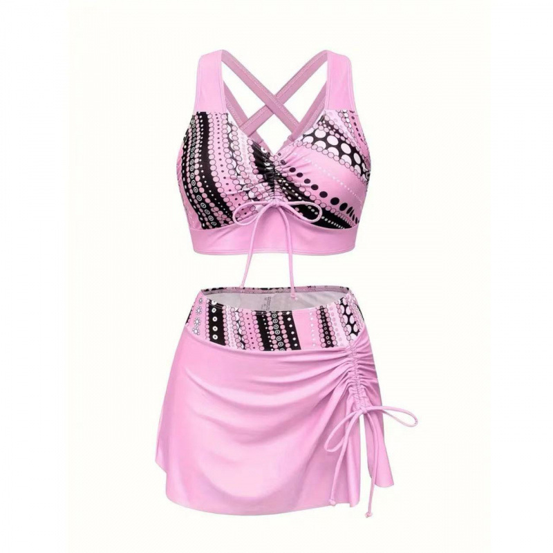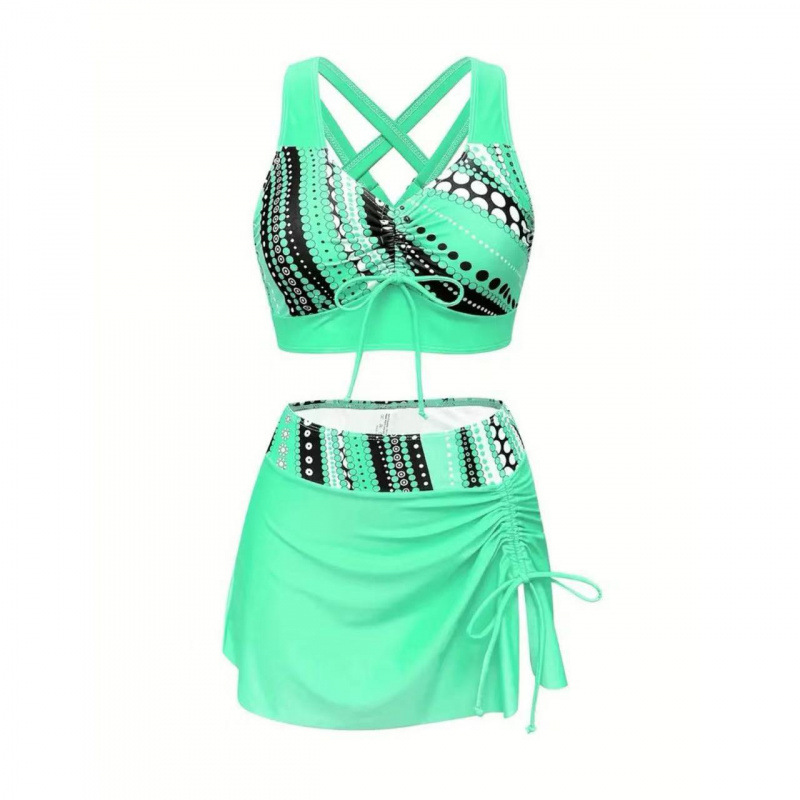 ✅ 2025 Amazon 새로운 맞춤형 프린트 수영복 유럽과 미국의 스플릿 수영복 여성용 대형 스커트 크로스보더 비키니