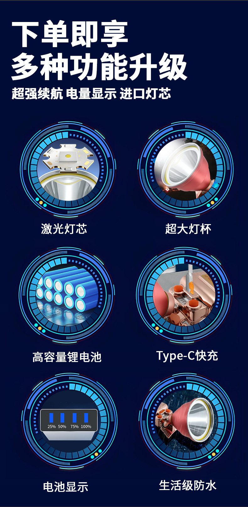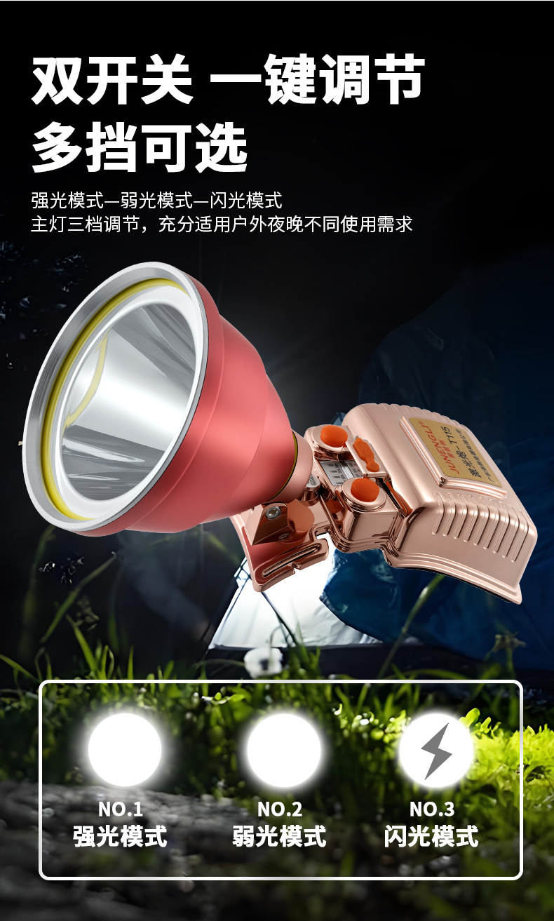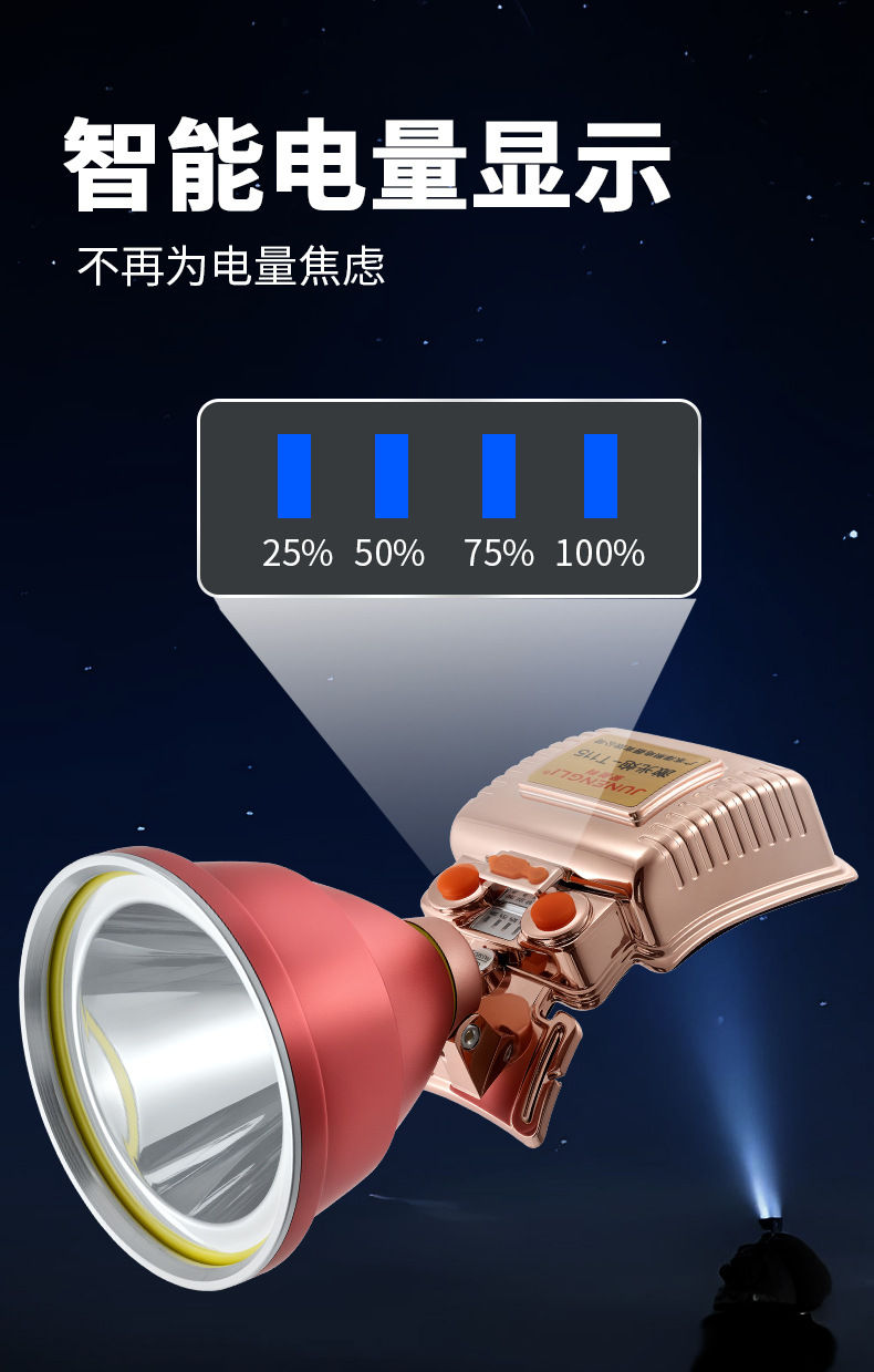 JUNGLI 야외 LED 헤드 장착형 헤드라이트 고출력 충전식 배터리 수명 원격 광부의 램프 야간 낚시 낚시 램프