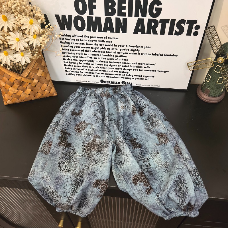 • 모기방지팬츠 코튼실크블루 캐슈플라워