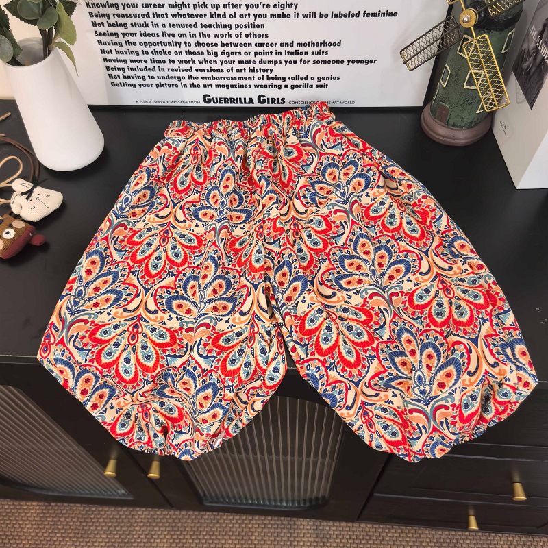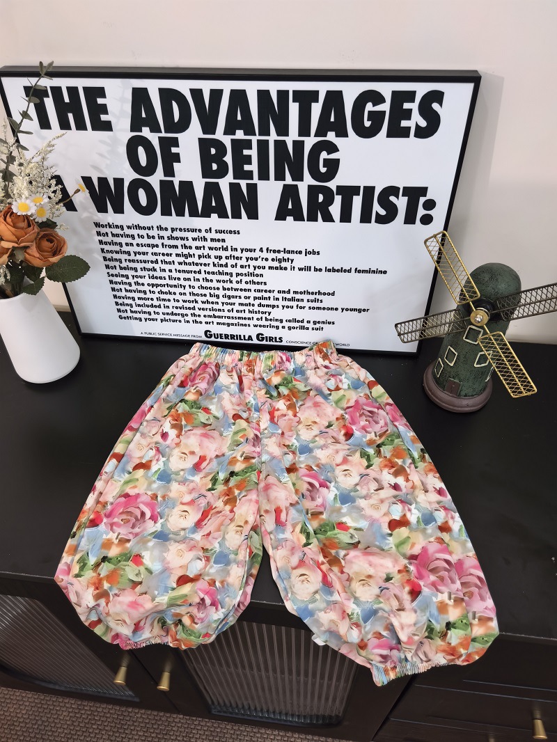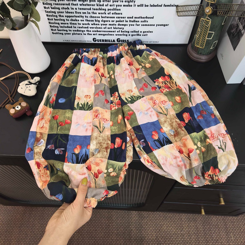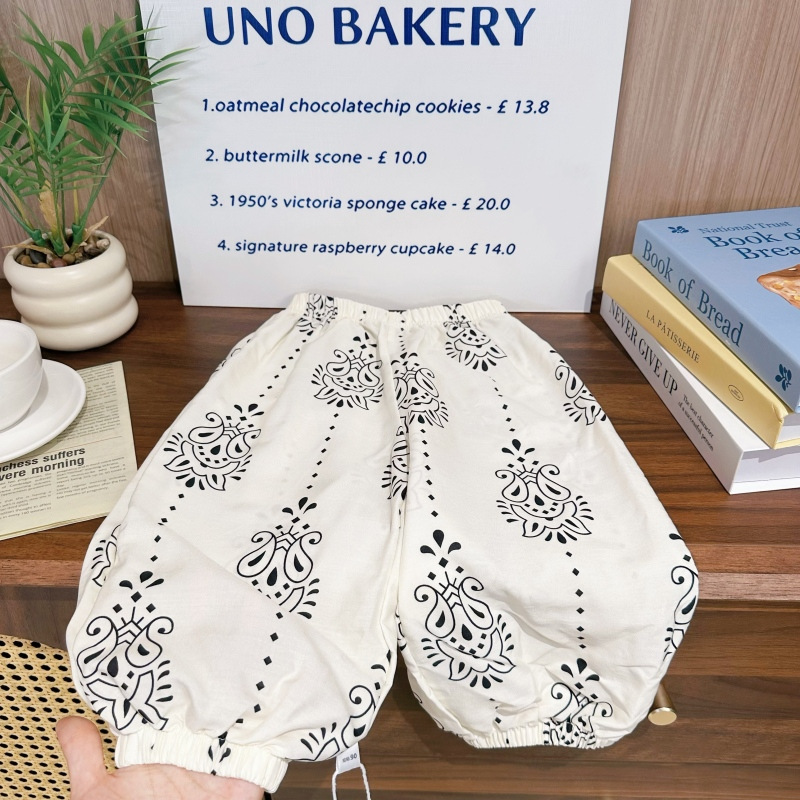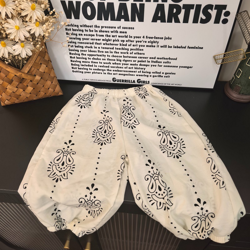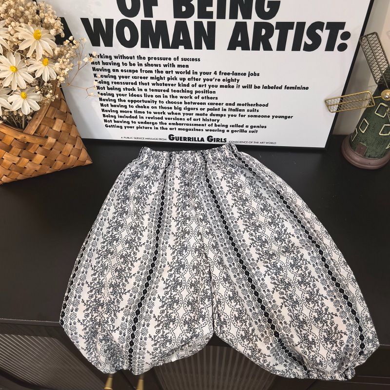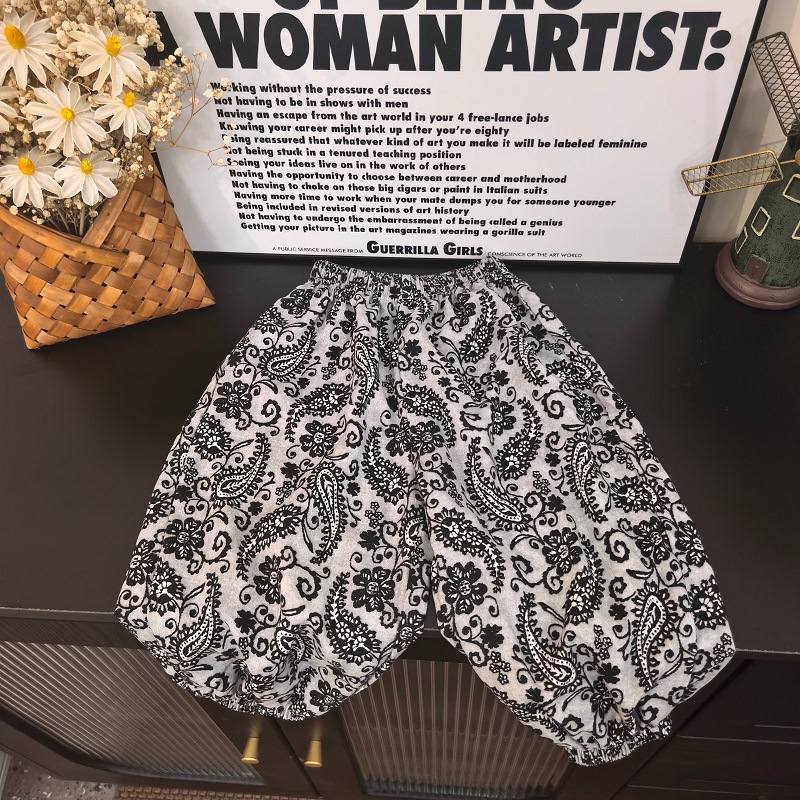 • 모기방지팬츠 면실크-흑백꽃무늬