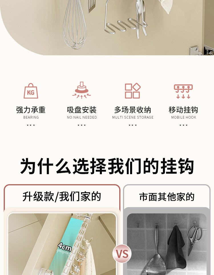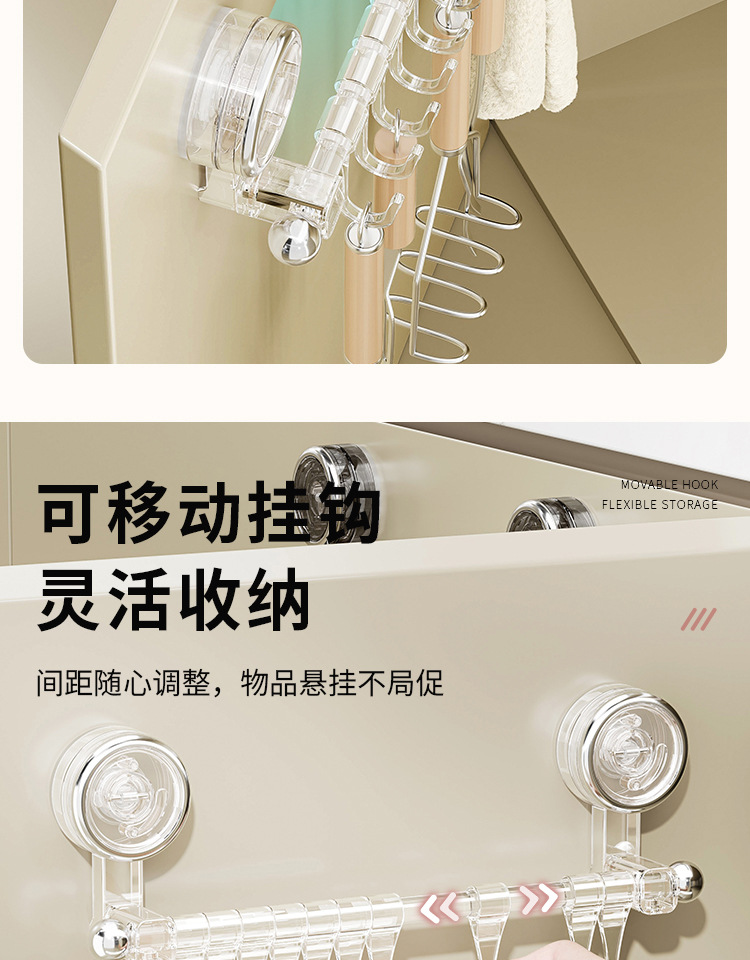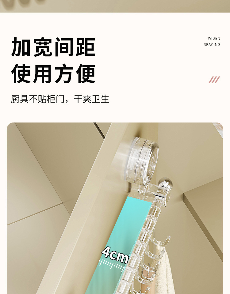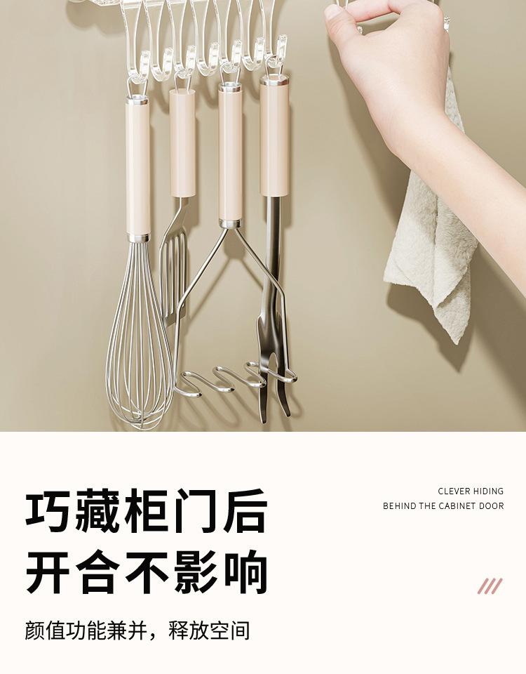 흡착컵 주방후크, 벽걸이형 펀치프리 슬라이드레일 후크, 캐비닛 도어 내부 스푼 및 삽 수납선반