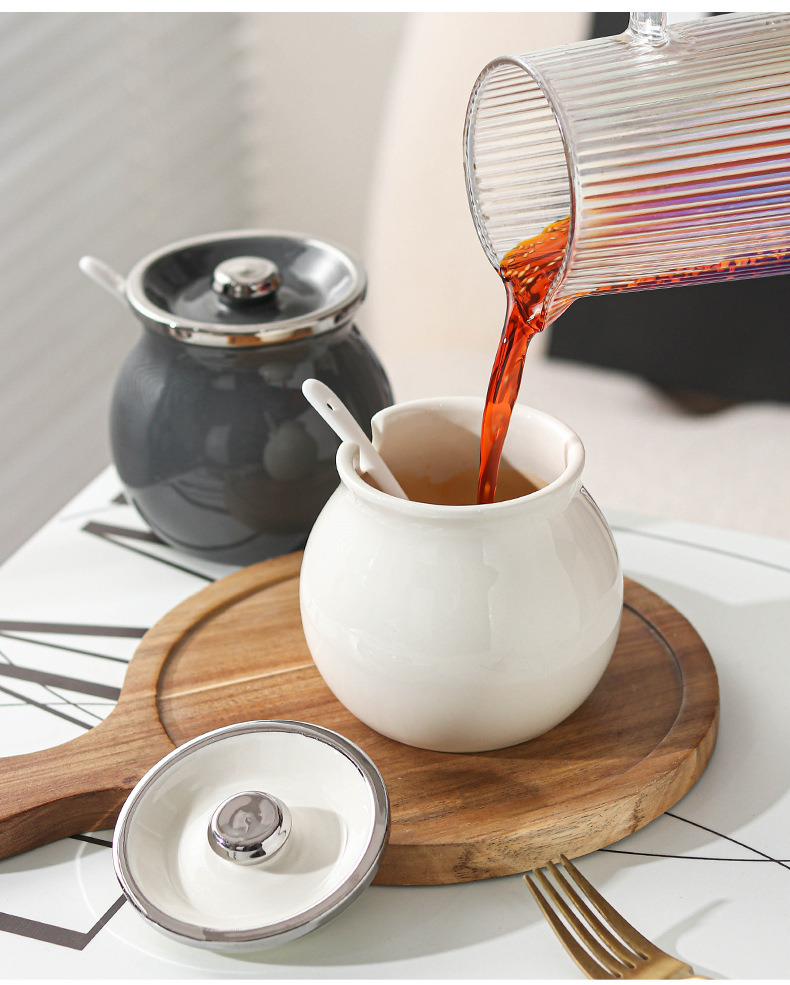 고기 기름 항아리 세라믹 고온 방지 일본식 주방 가정용 소금 항아리 오일 칠리 항아리 뚜껑이 있는 칠리 오일 항아리