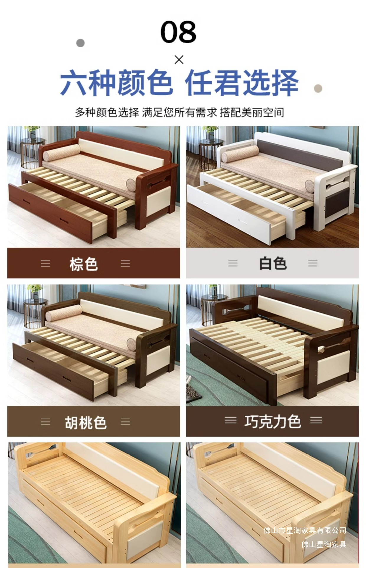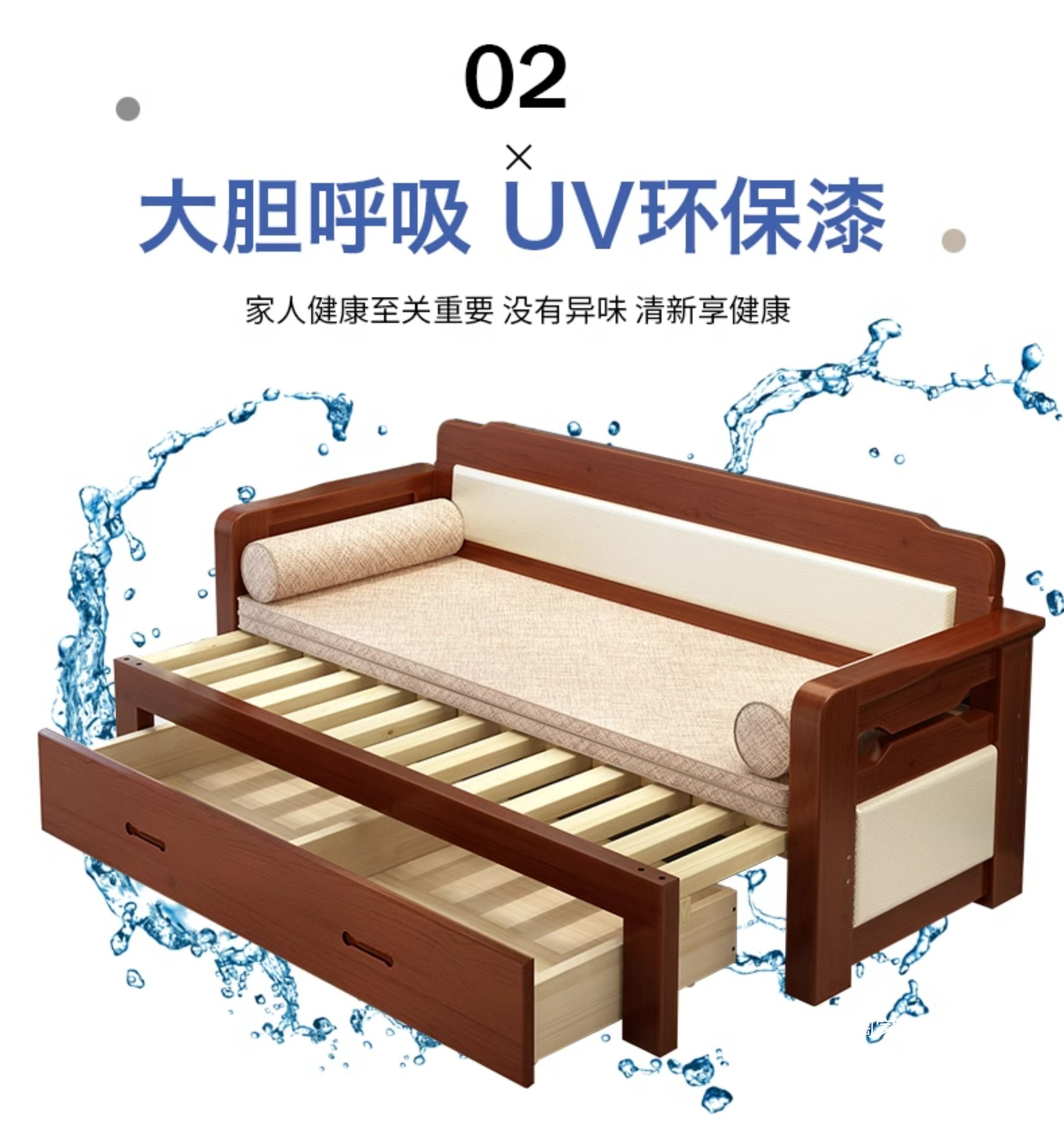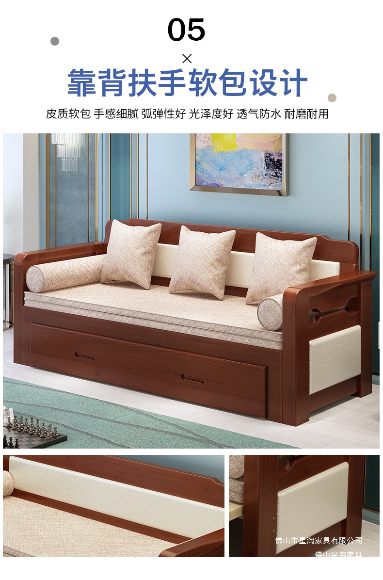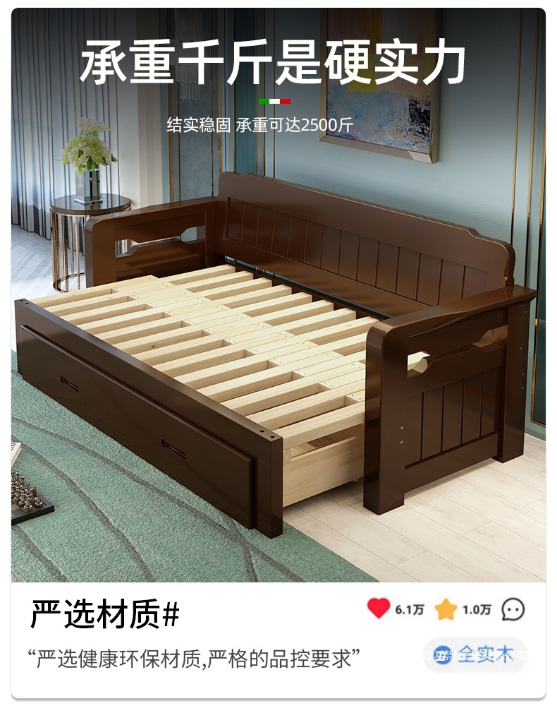 단단한 나무 소파 침대 접이식 작은 아파트 더블 좌석 침대 푸시 풀 거실 다기능 1.5m 텔레스코픽 침대 이중 용도