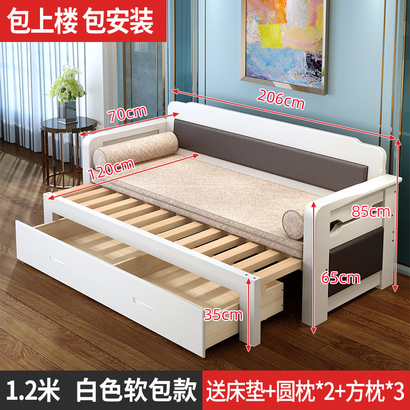 단단한 나무 소파 침대 접이식 작은 아파트 더블 좌석 침대 푸시 풀 거실 다기능 1.5m 텔레스코픽 침대 이중 용도스토어 가기