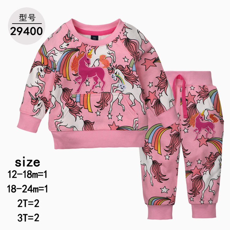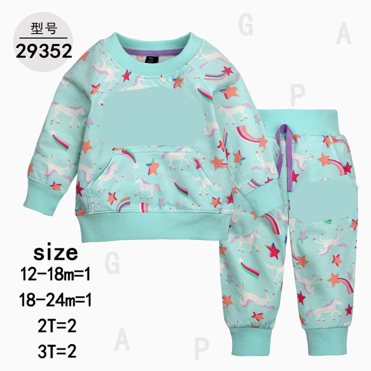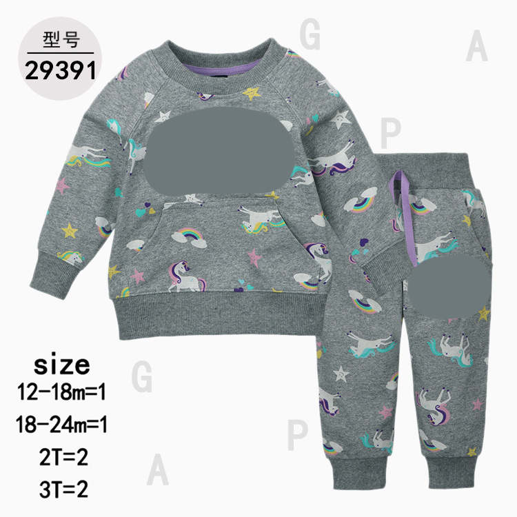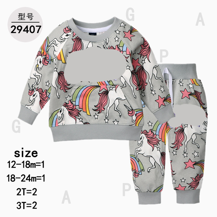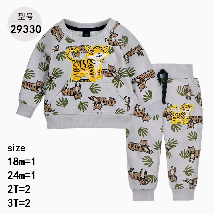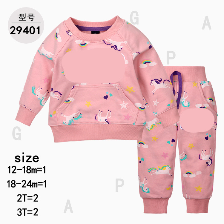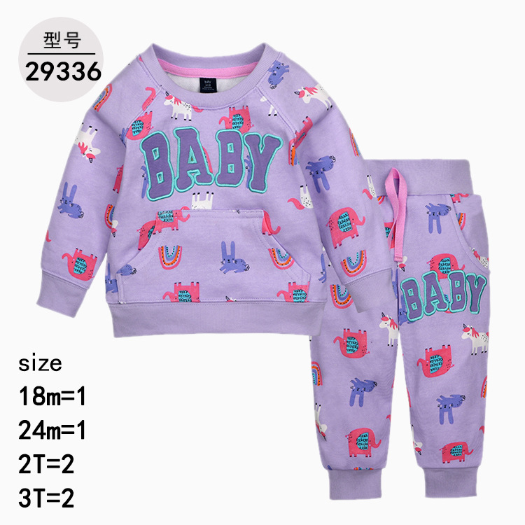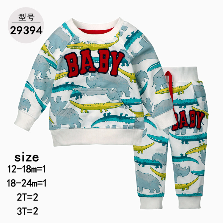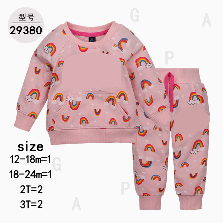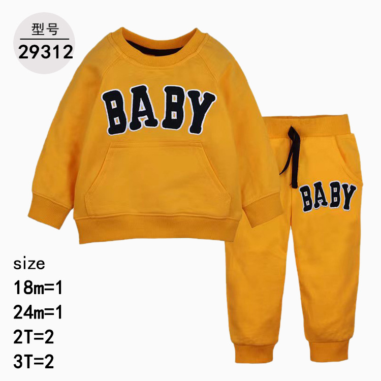 [도매] 봄과 가을 새로운 아동복 스웨트 셔츠 소재 유아 라운드 넥 투피스 슈트 활기찬 스포츠 슈트 크로스보더스토어 가기
