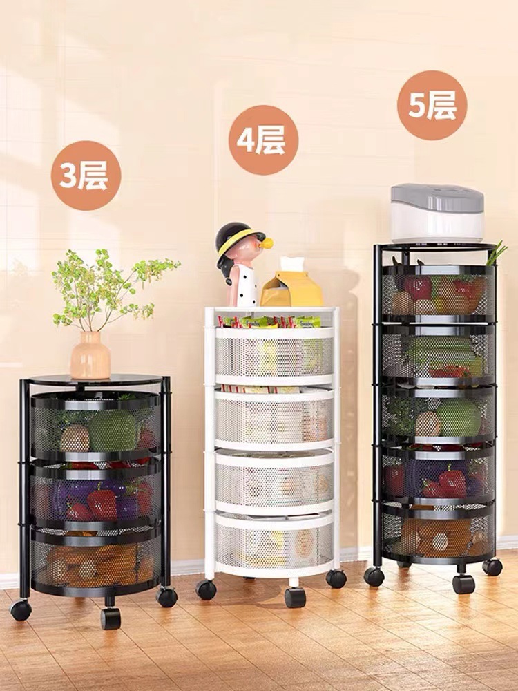 새로운 회전식 수납 랙, 설치가 필요 없는 수납 랙, 거실 다기능 가정용 다층 이동식 수납 바구니