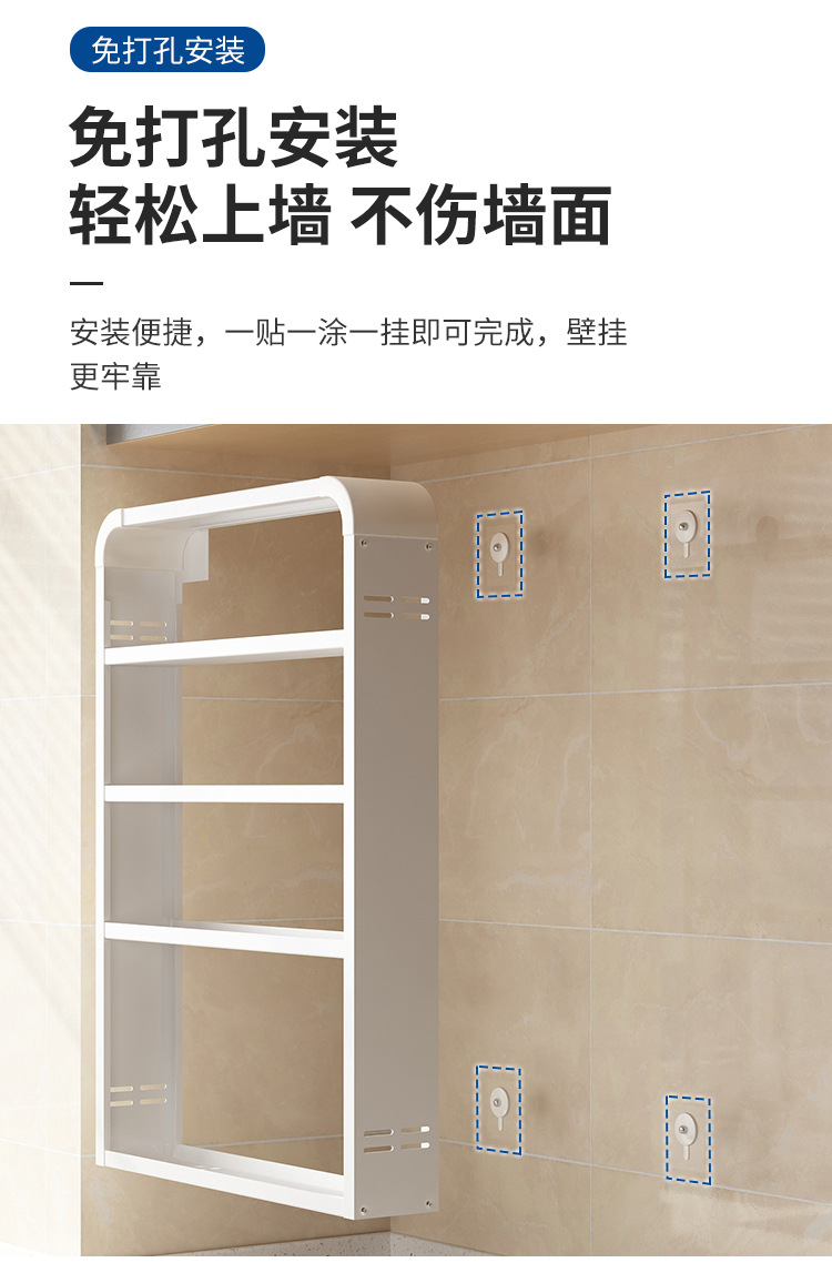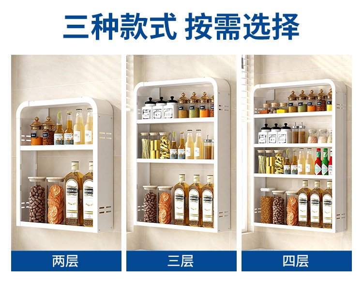 주방 수납 선반, 조절 가능한 조미료 선반, 벽걸이형, 펀치 없는 벽 다층 수납 선반, 가정용 조미료 수납스토어 가기