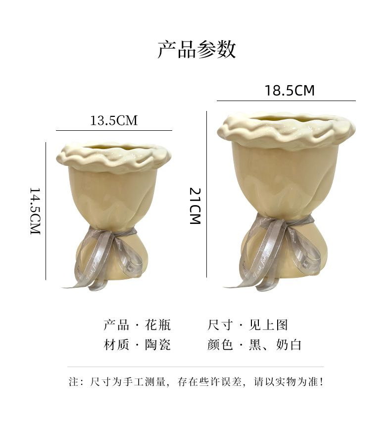 프랑스 크림 스타일 세라믹 꽃병 생일 맞춤형 꽃꽂이 복고풍 수경 와비사비 스타일 거실 장식품