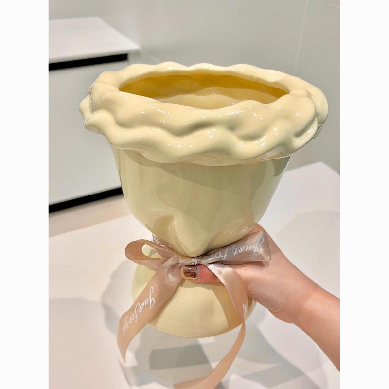 프랑스 크림 스타일 세라믹 꽃병 생일 맞춤형 꽃꽂이 복고풍 수경 와비사비 스타일 거실 장식품스토어 가기
