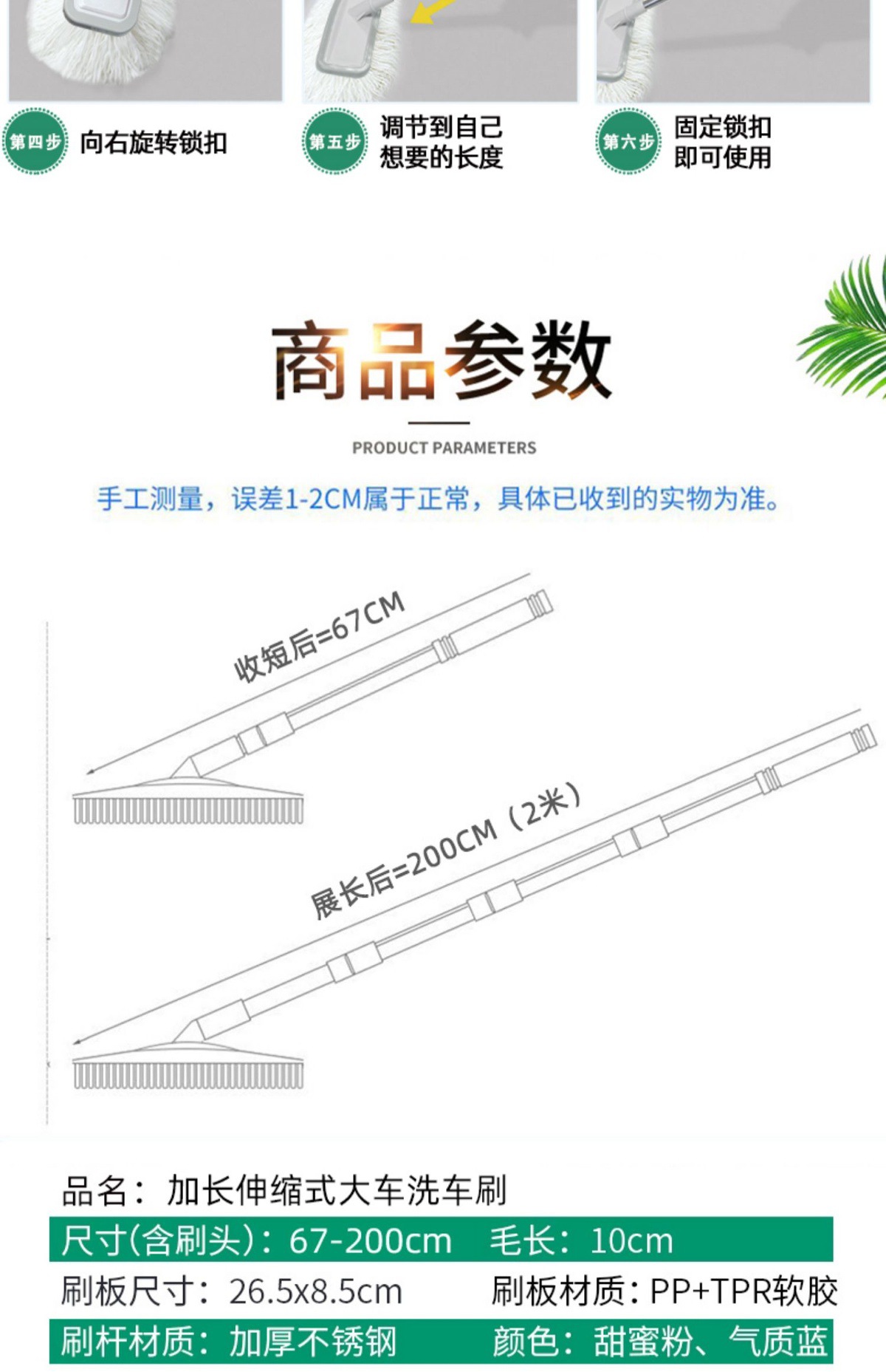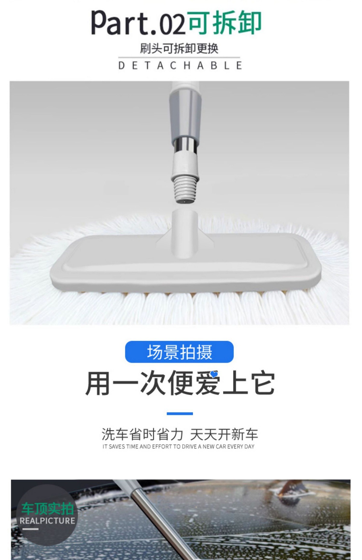 • 2m 강화 세차 브러시 + 1L 세차액 + 예비 브러시 헤드