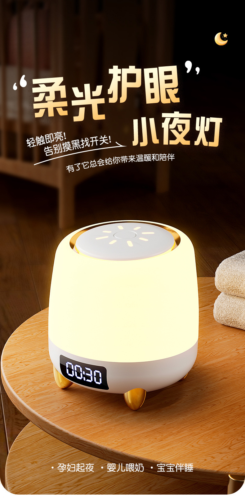 알람 시계 원격 제어 충전식 야간 조명 아기 수유 눈 보호 테이블 램프 라이트 럭셔리 침대 옆 램프 침실 수면 램프스토어 가기