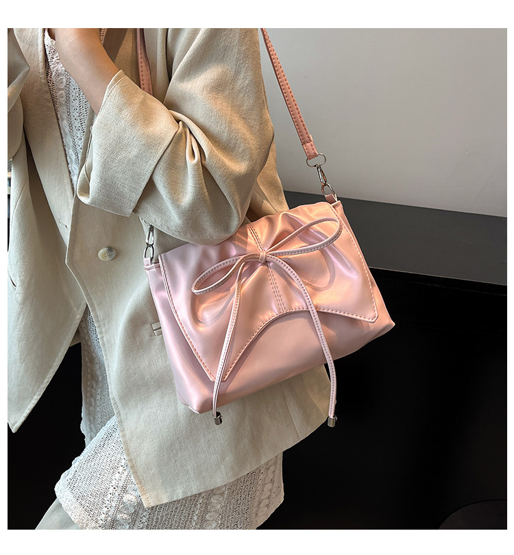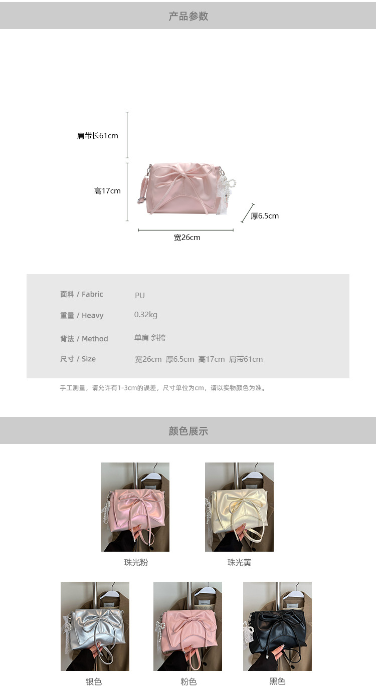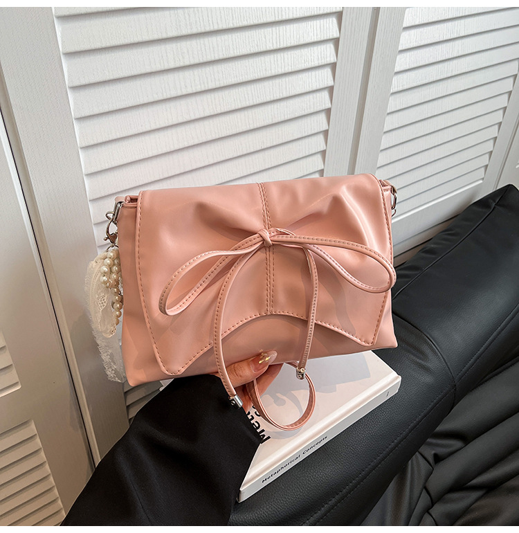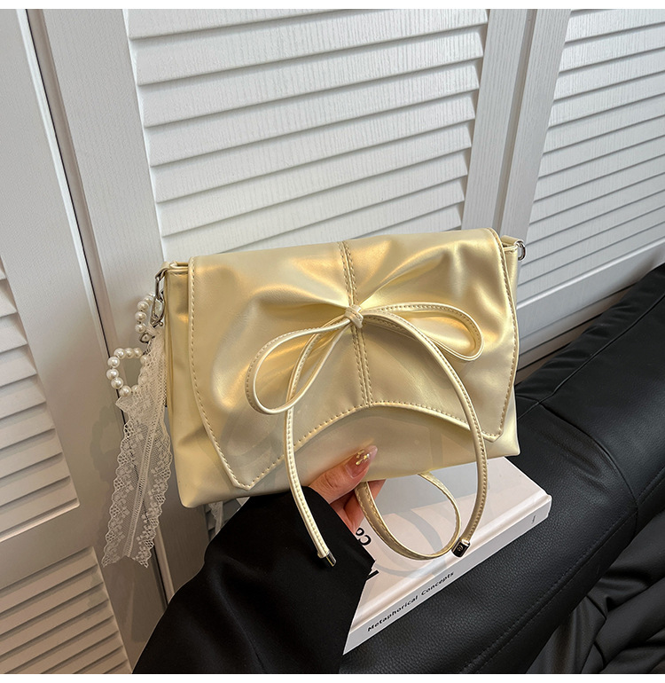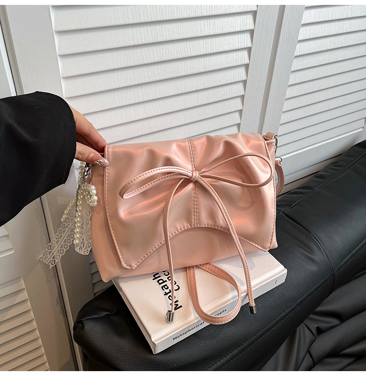 2025 발레 스타일 가방 여성 진주 빛 보우 숄더 백 크로스 바디 봉투 가방 다목적 소녀 가방 새로운 주름스토어 가기