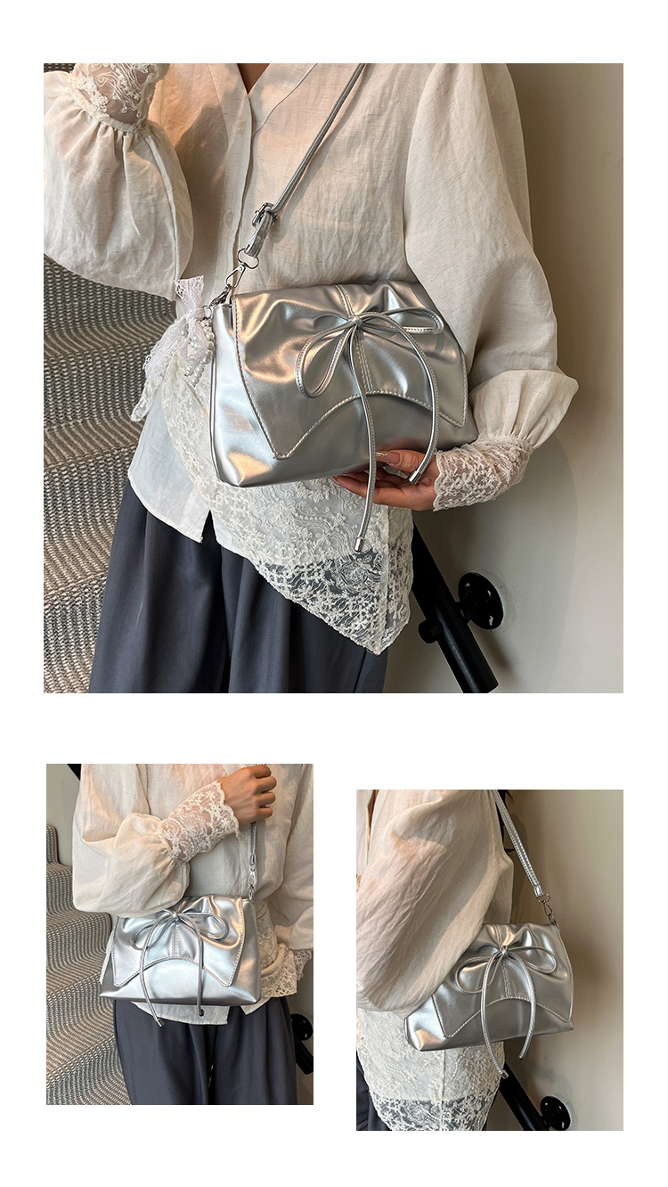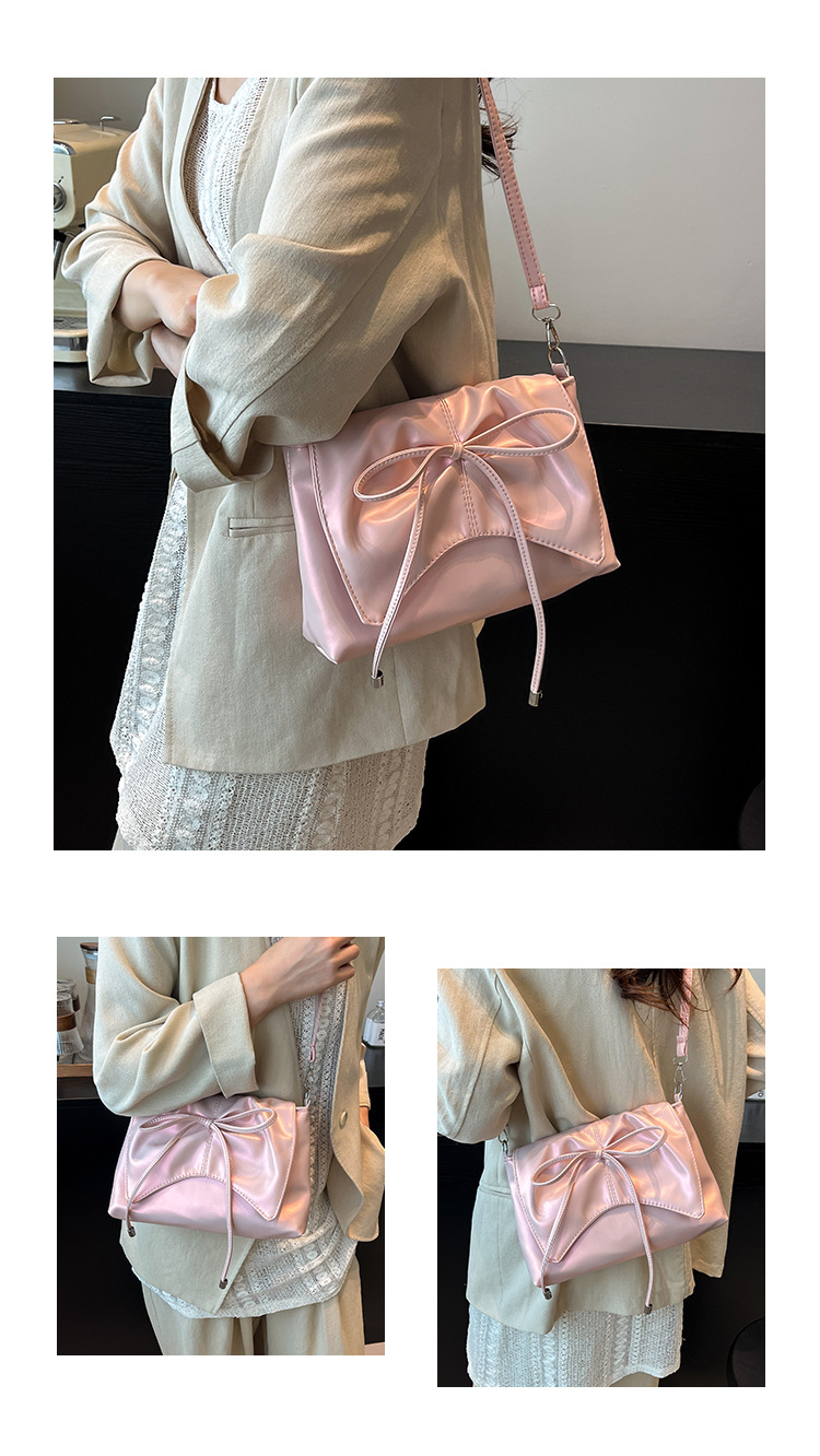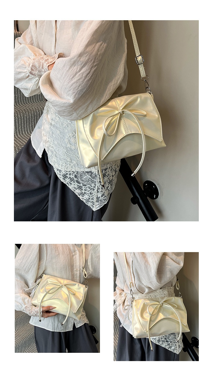 2025 발레 스타일 가방 여성 진주 빛 보우 숄더 백 크로스 바디 봉투 가방 다목적 소녀 가방 새로운 주름스토어 가기