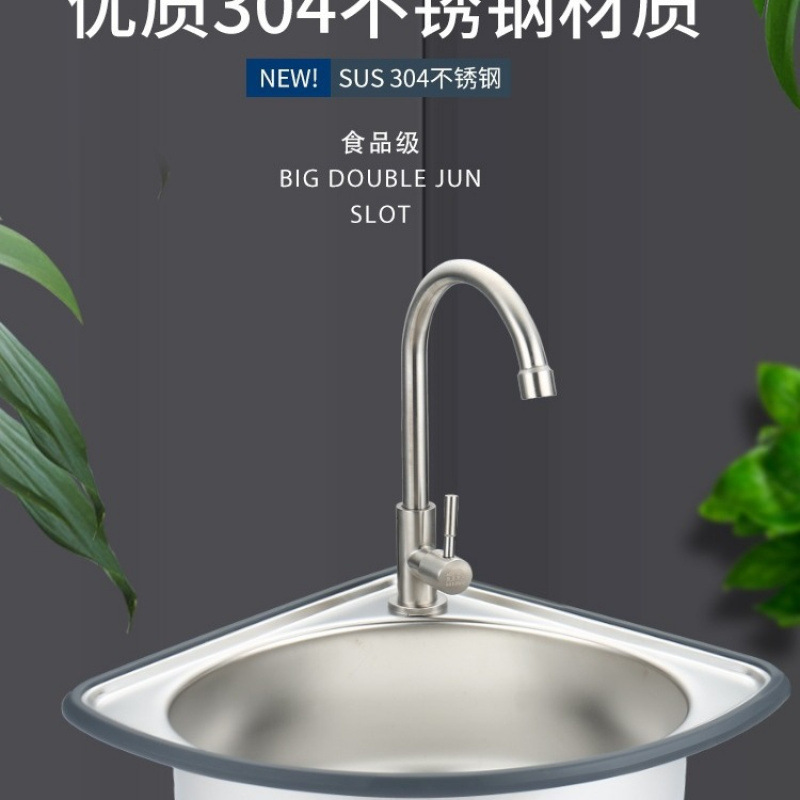 스테인레스 스틸 물 삼각형 세면대 주방 식기 세척 싱크대 단일 소형 식기 세척 가정용 간단한 세면대스토어 가기