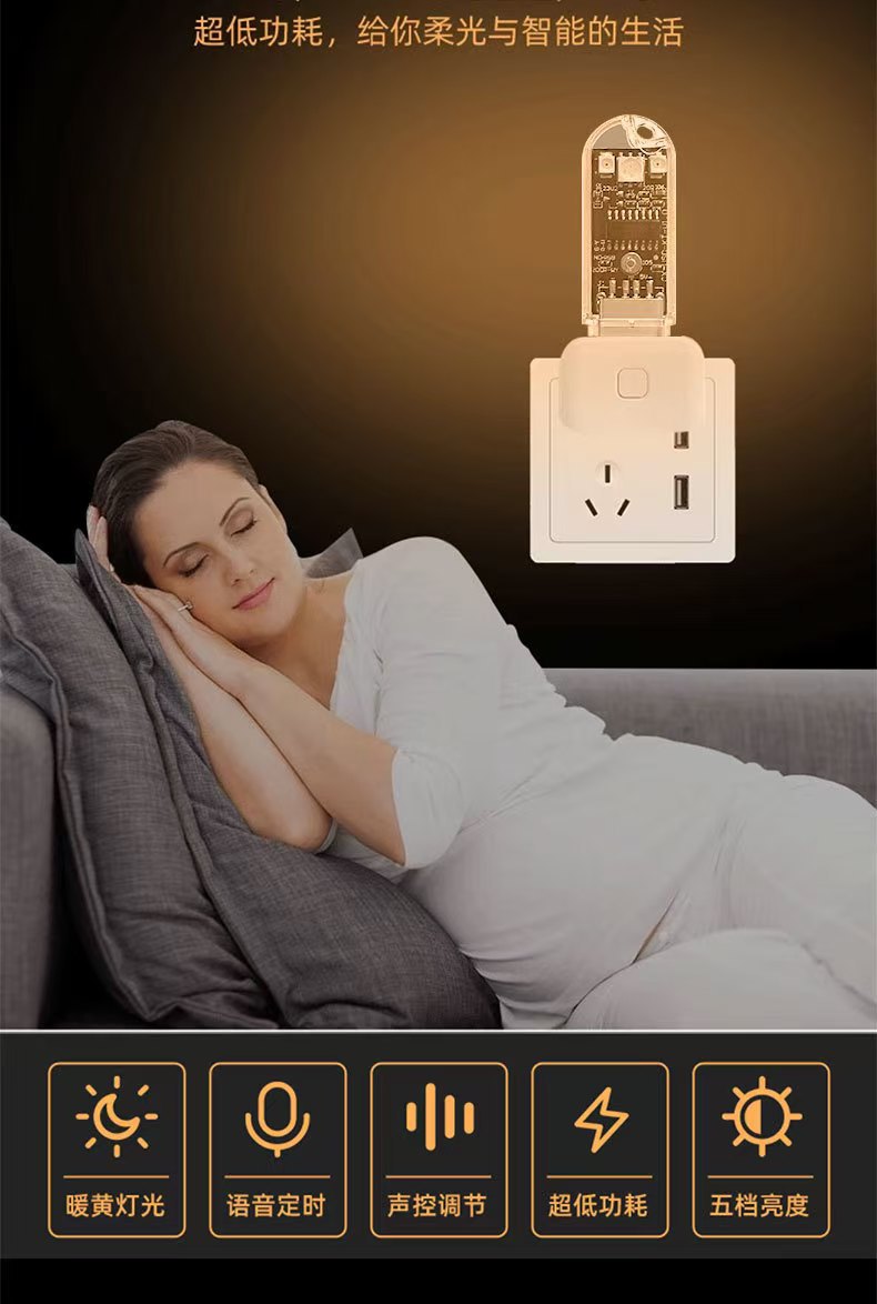 USB 램프 스마트 AI 음성 램프 지능형 음성 제어 야간 조명 플러그인 제어 가능한 에어컨 야간 조명스토어 가기