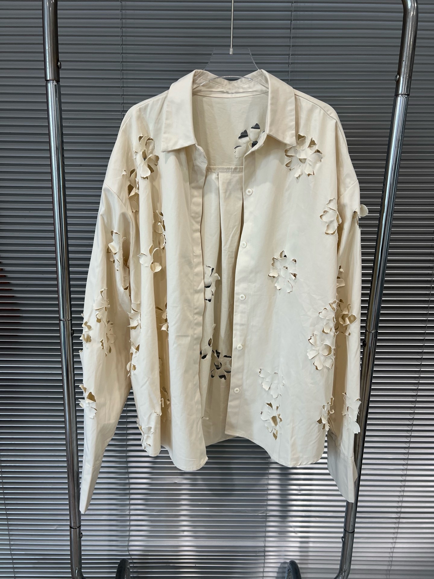 2025 초가을 여성을 위한 슈퍼 핫 여름 정장, 디자인 중공 자수 자외선 차단 셔츠와 반바지 투피스 세트스토어 가기