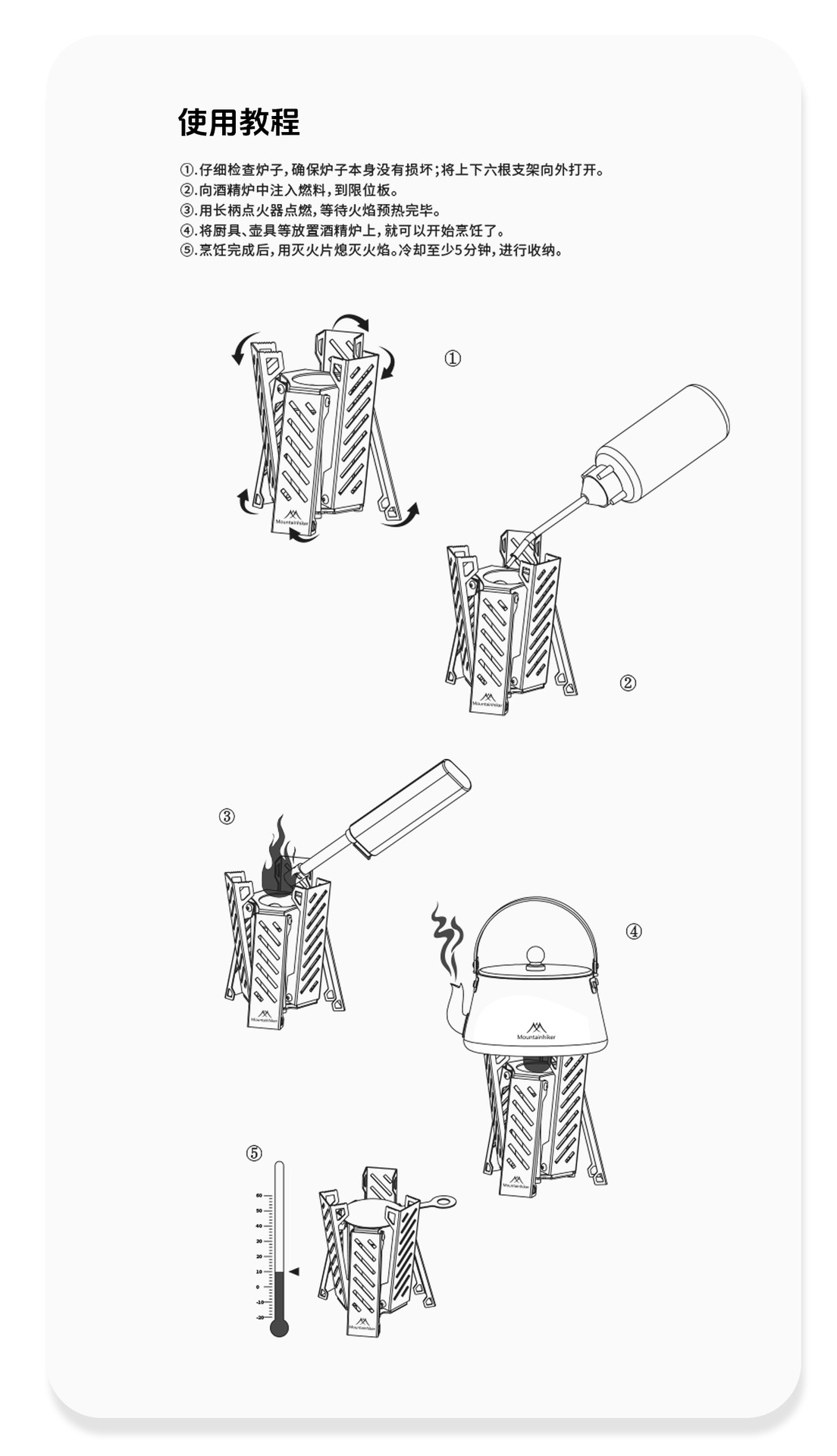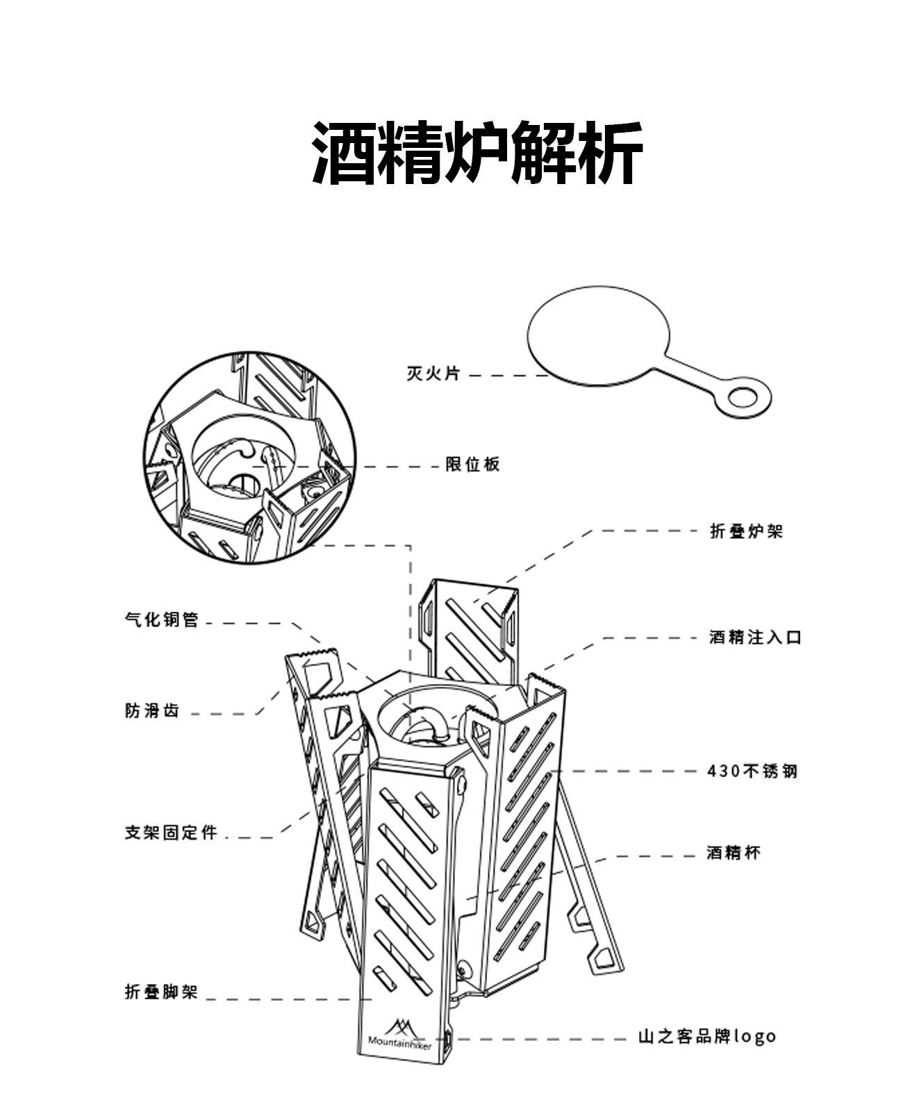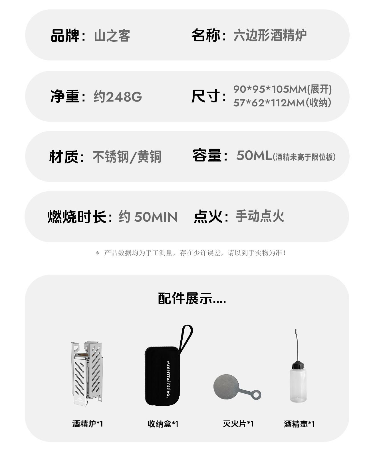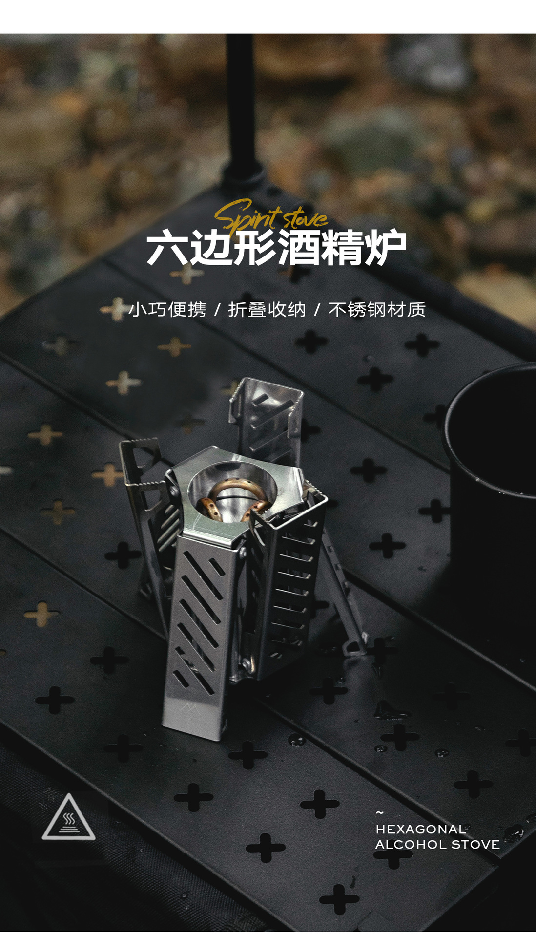 Mountain Guest 육각형 알코올 스토브 야외 캠핑을 위한 휴대용 접이식 스토브 헤드스토어 가기