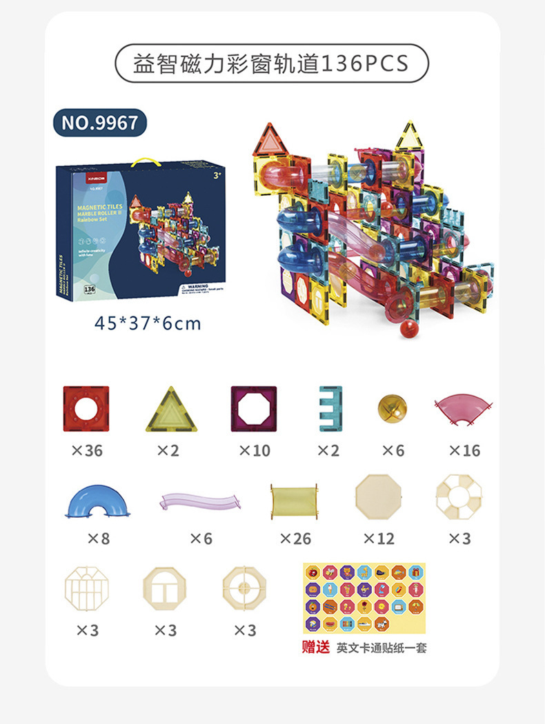 Xinbida 컬러 창 자기 시트 볼 슬라이딩 트랙 파이프 조립 강력한 흡입 어린이 선물 교육 빌딩 블록 장난감스토어 가기