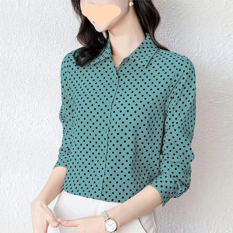 긴팔 봄, 가을 새로운 스타일 중년 어머니의 유행상의 한국 스타일 패션 기질 프린트 쉬폰 셔츠